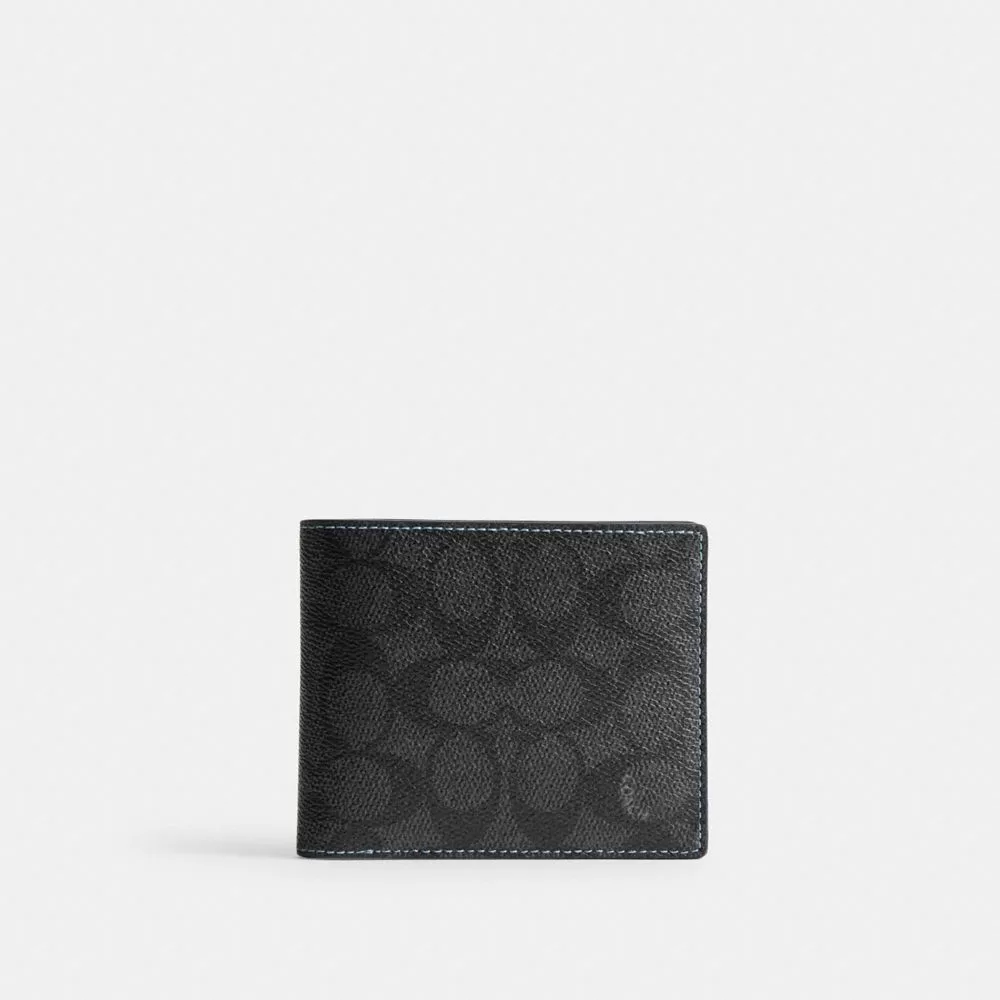 Coach Men Billfolds 3 In 1 Wallet In Signature Canvas Charcoal/Blueberry