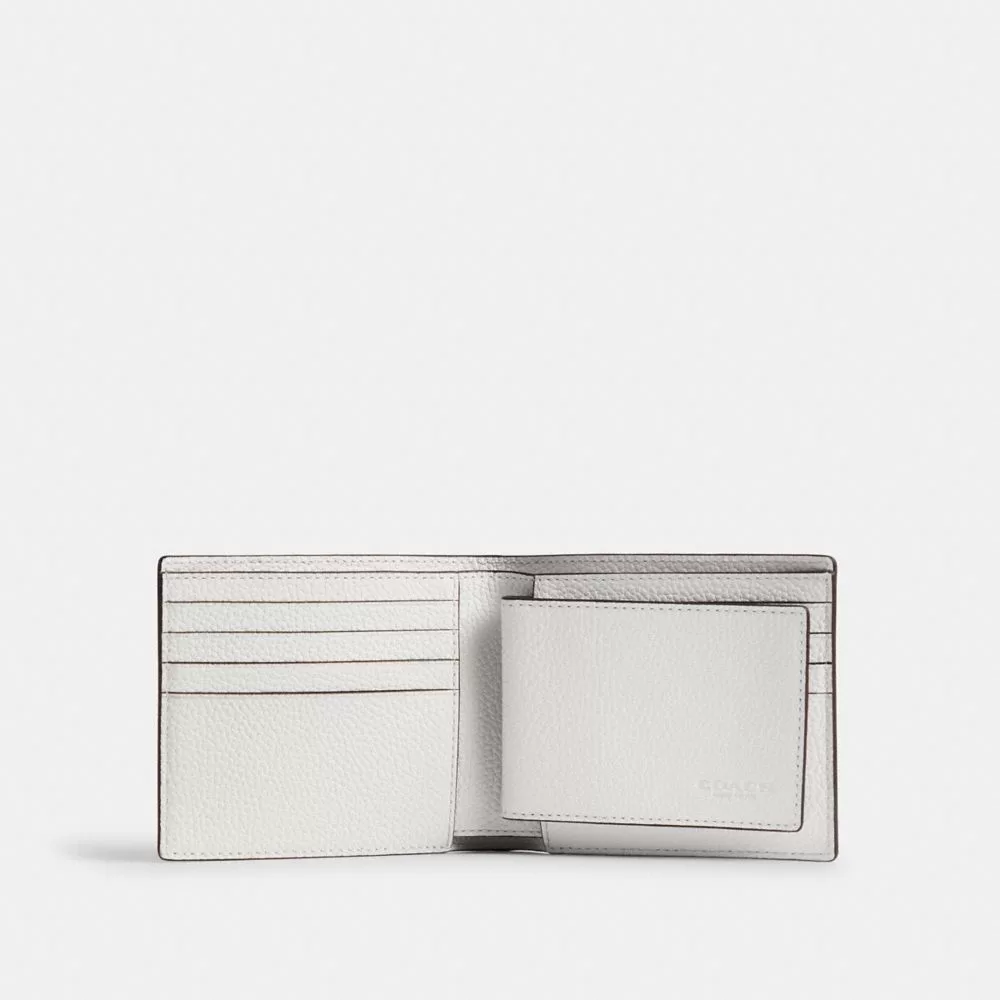 Coach Men Billfolds 3 In 1 Wallet With Graphic polished pebble leather/Chalk Multi