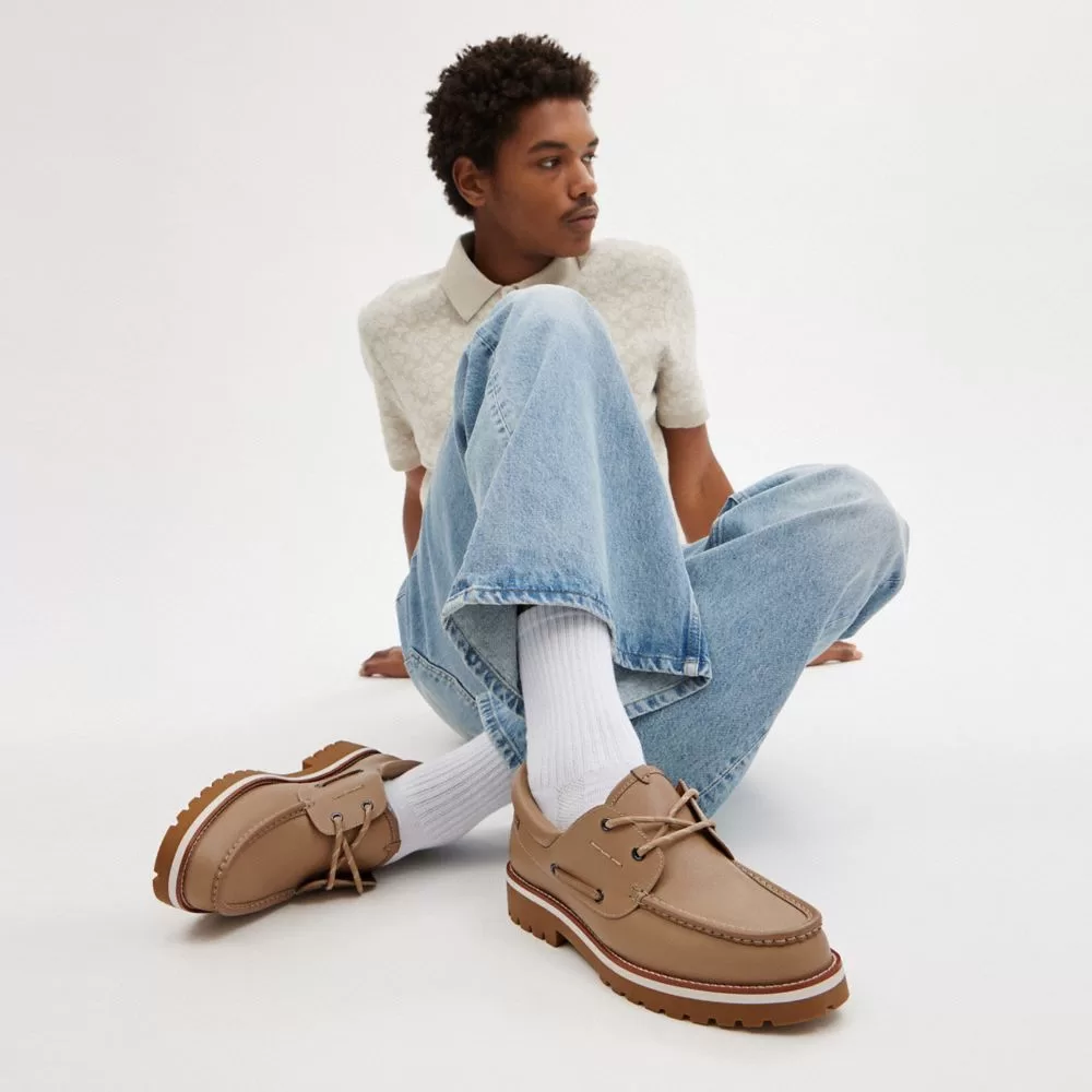 Coach Men Loafers & Drivers Benson Boat Shoe Taupe