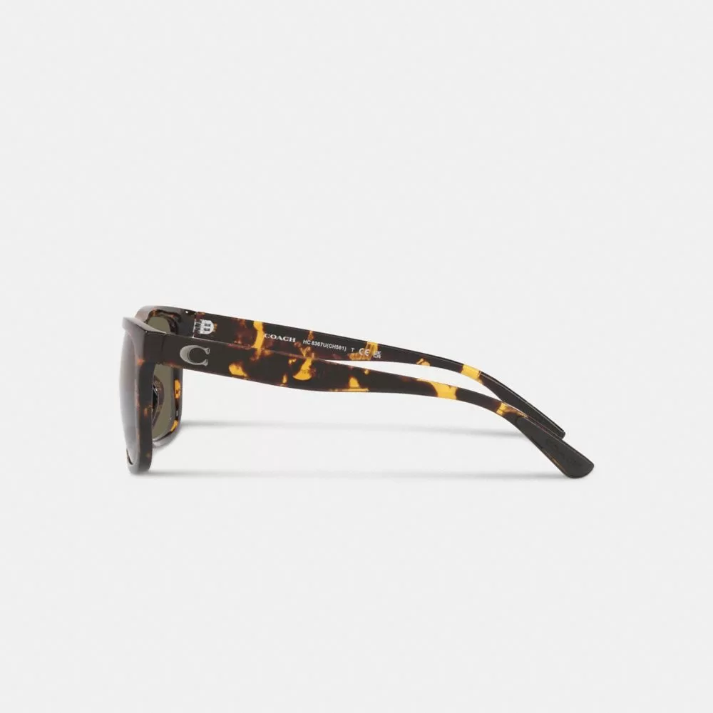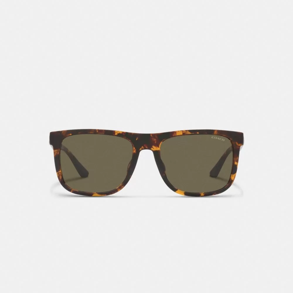 Coach Men Sunglasses Beveled Signature Flat Top Square Sunglasses Dark Tortoise