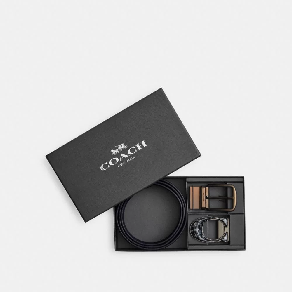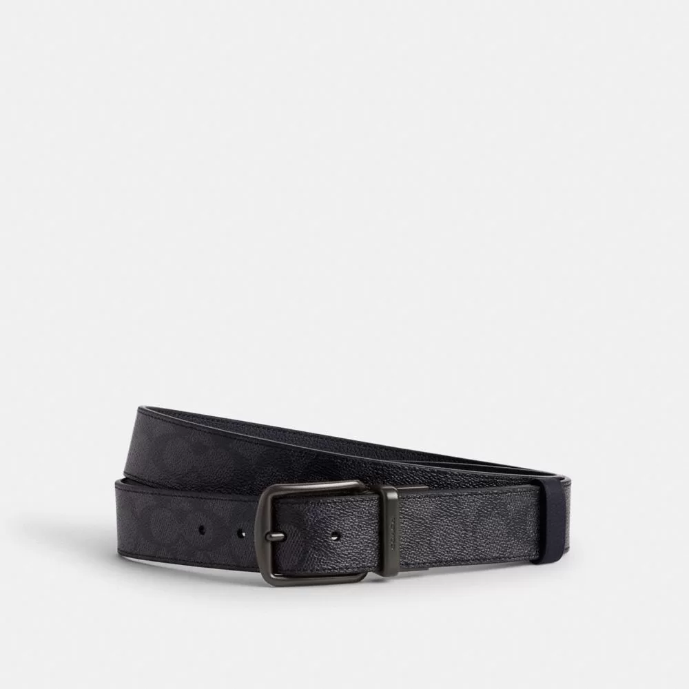 Coach Men Belts Boxed Harness And Signature Buckle Cut To Size Reversible Belt, 38 Mm Charcoal/Midnight Navy