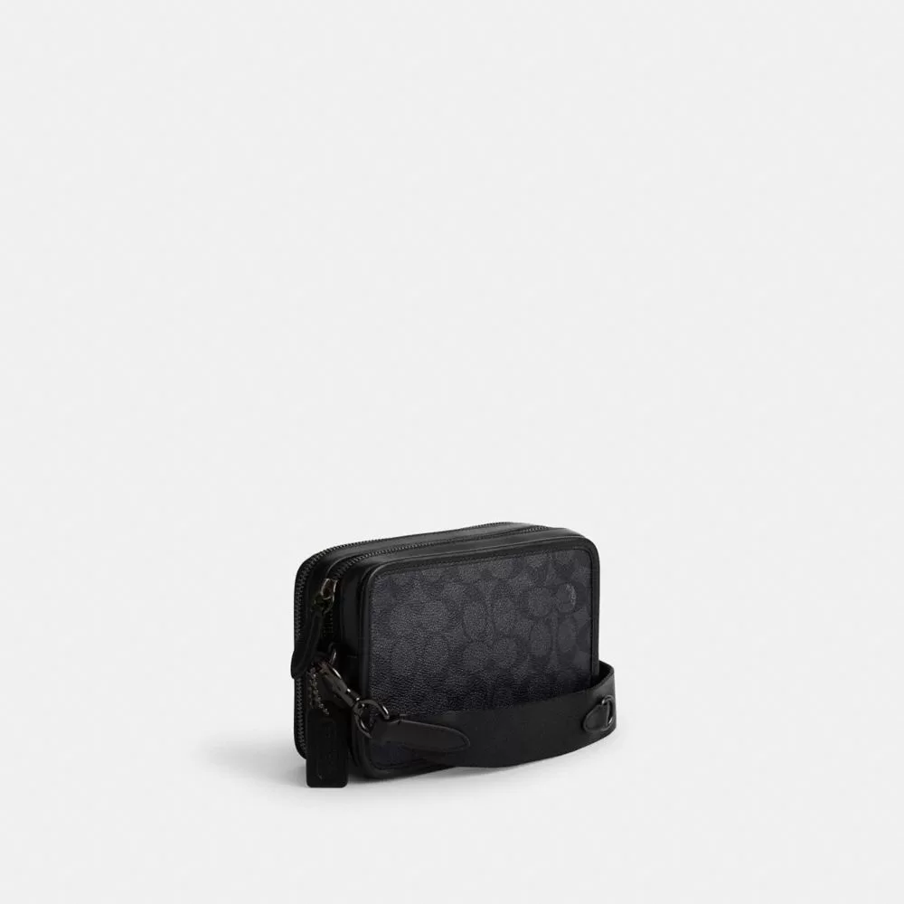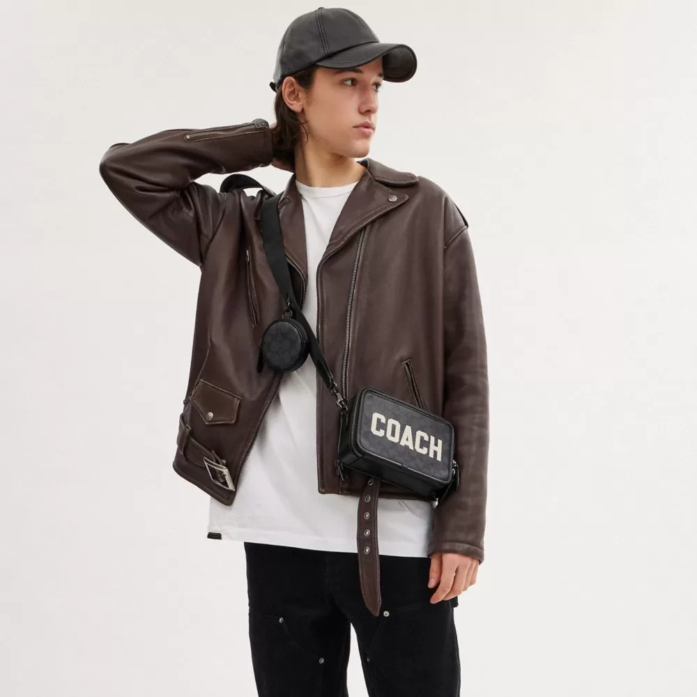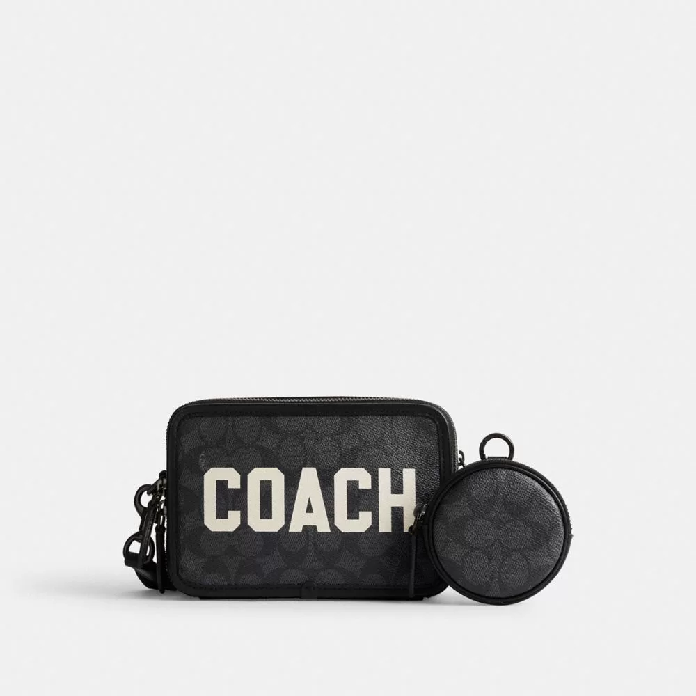 For adventures near and far, our Charter is designed to make every journey, commute and errand feel like a first-class experience. Crafted of refined leather and Signature canvas detailed with our Coach graphic, this versatile crossbody keeps items organized with six card slots, a multifunction pocket and detachable round zip pouch. Slip it into a backpack, brief or tote, carry it as a clutch with the slip handle or convert it to a small messenger crossbody with the detachable strap.