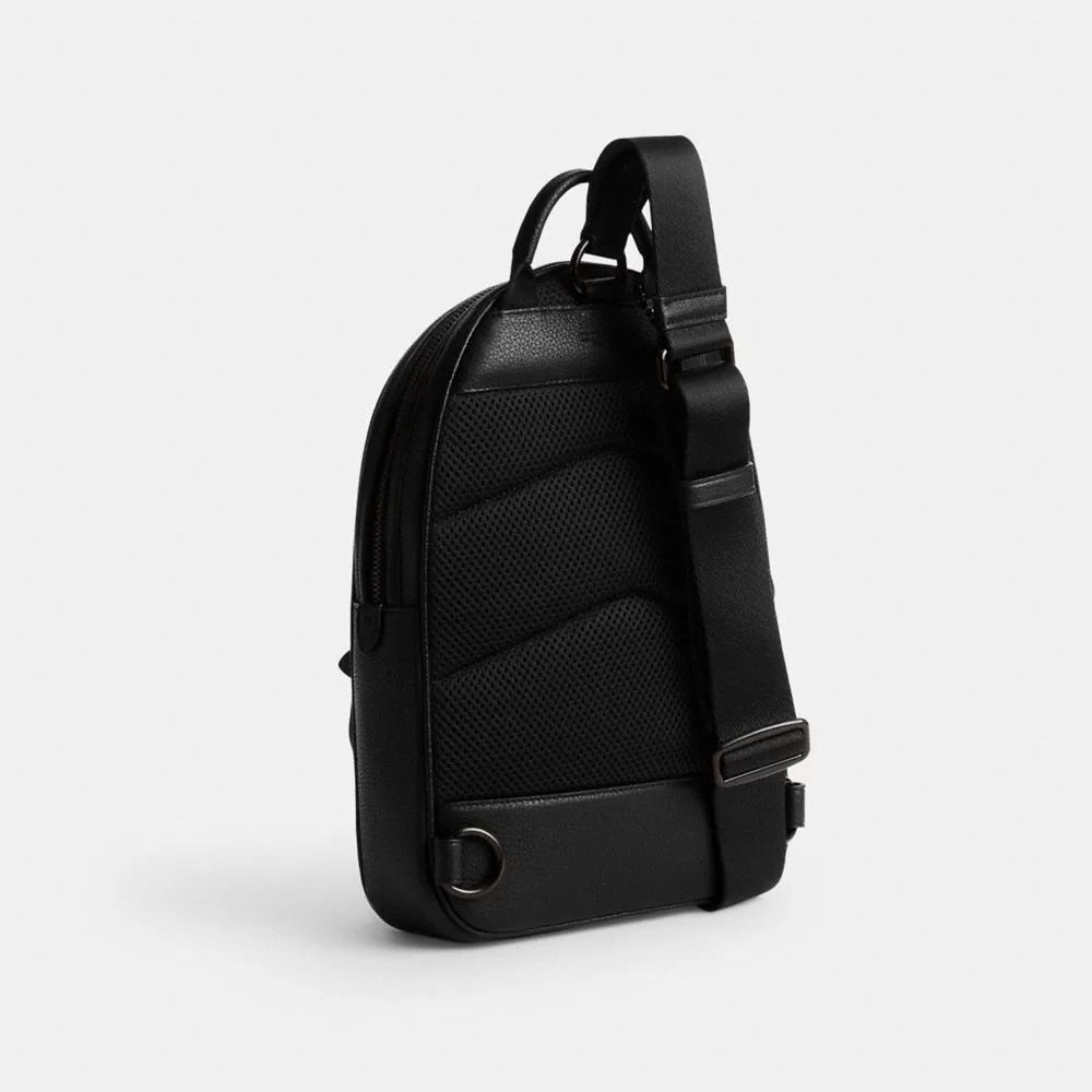 For adventures near and far, our Charter is designed to make every journey, commute and errand feel like a first-class experience . A slender alternative to a backpack, this streamlined pack is a sporty hands-free design with room for the largest size phone or iPad, pockets inside and out for easy organization and lightweight spacer mesh backing. Crafted of our Signature soft polished pebble leather finished with durable matte tonal PVD coated hardware, clip it left side or right side to wear slung on the shoulder or crossbody.