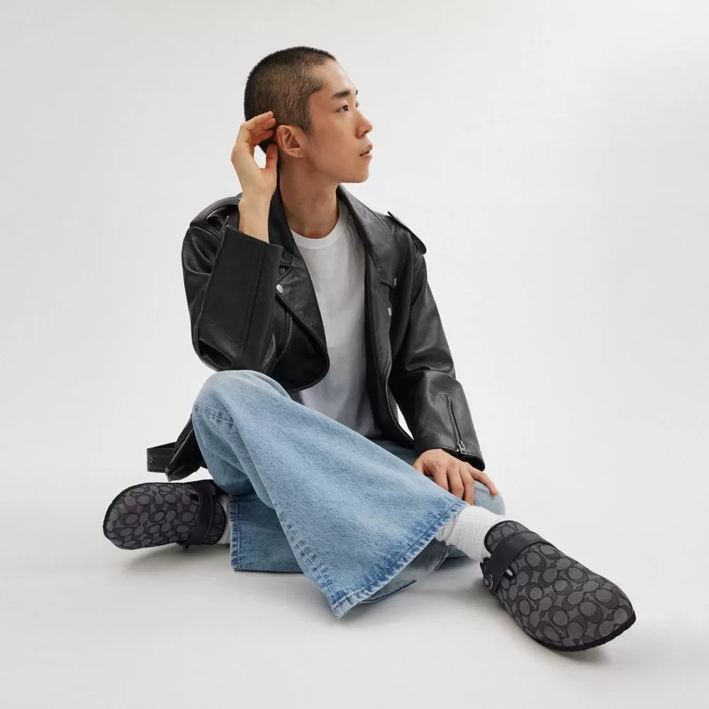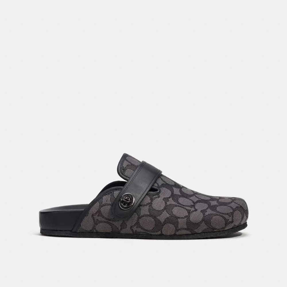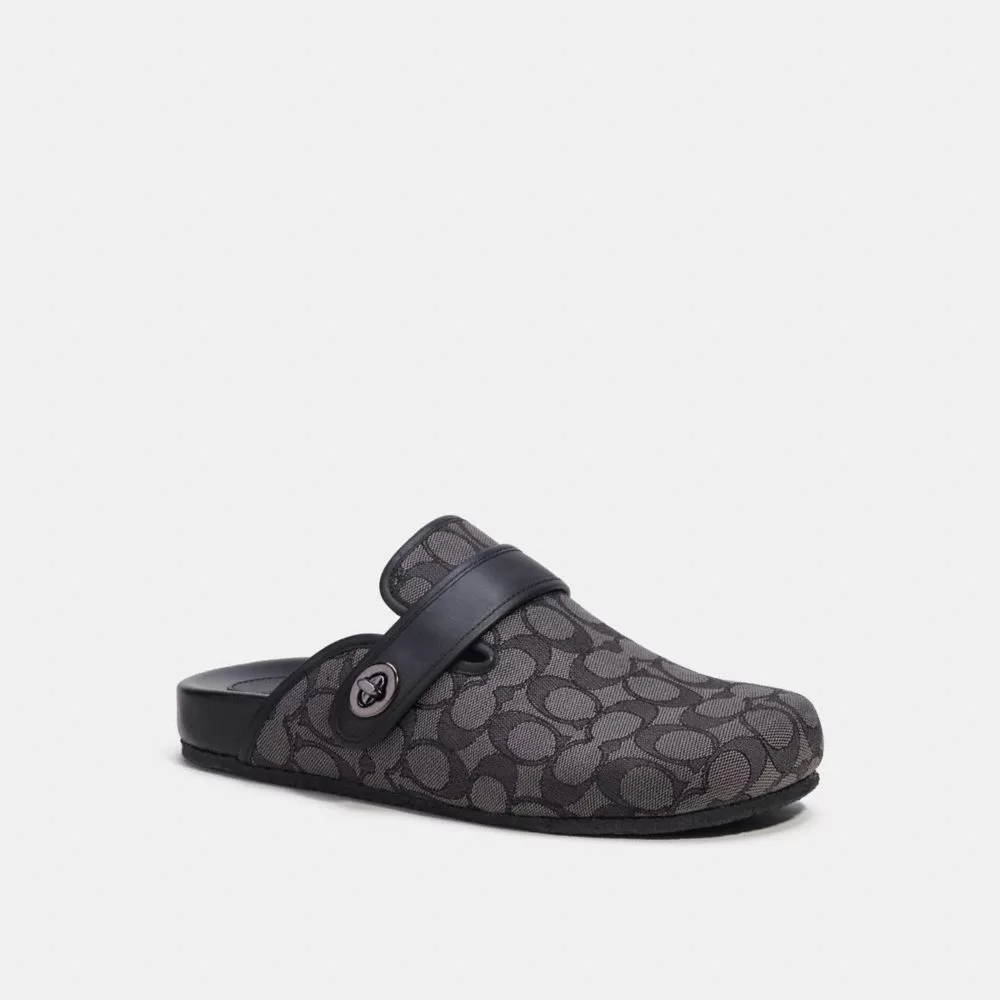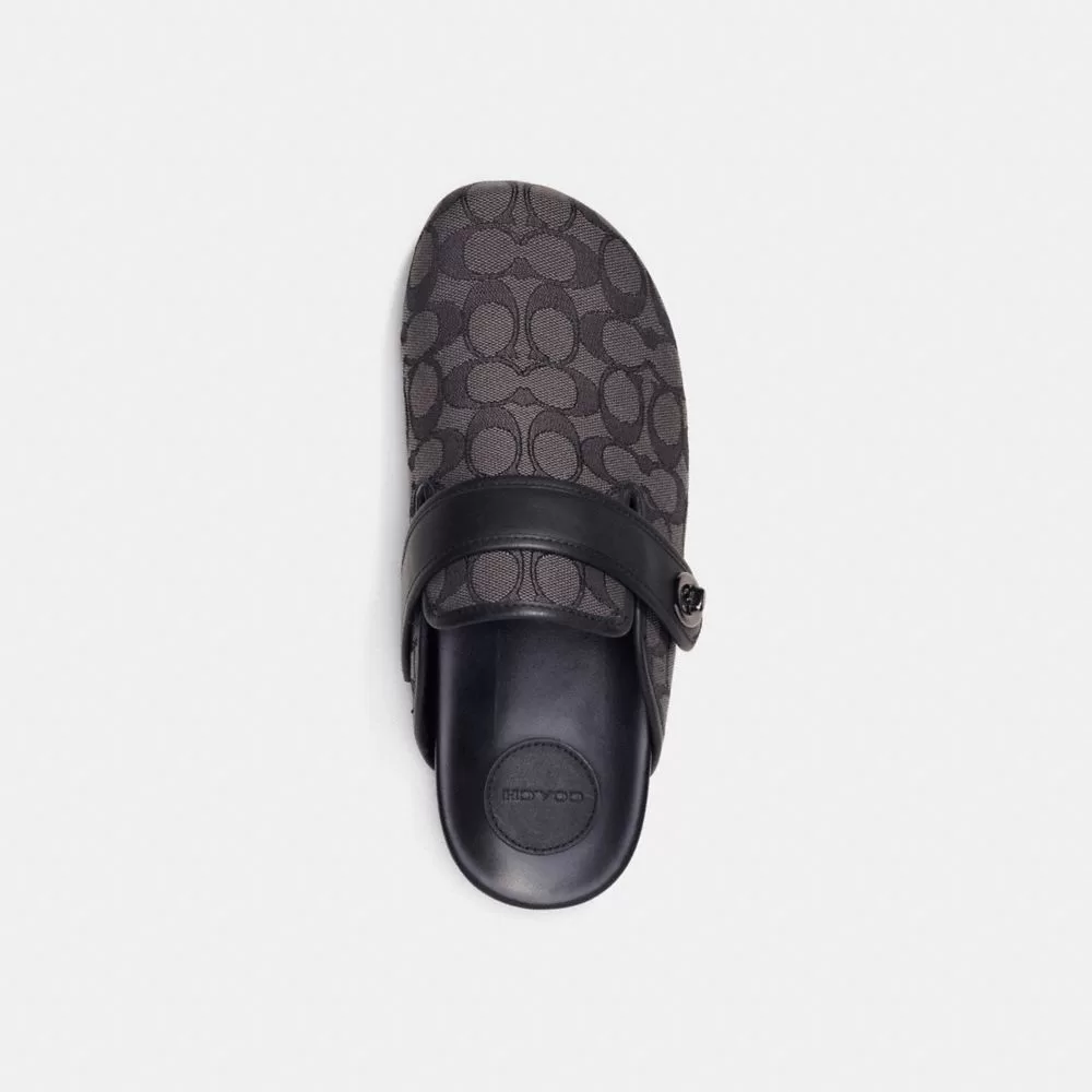 Coach Clog In Signature Jacquard Sandals Mens Gray Black