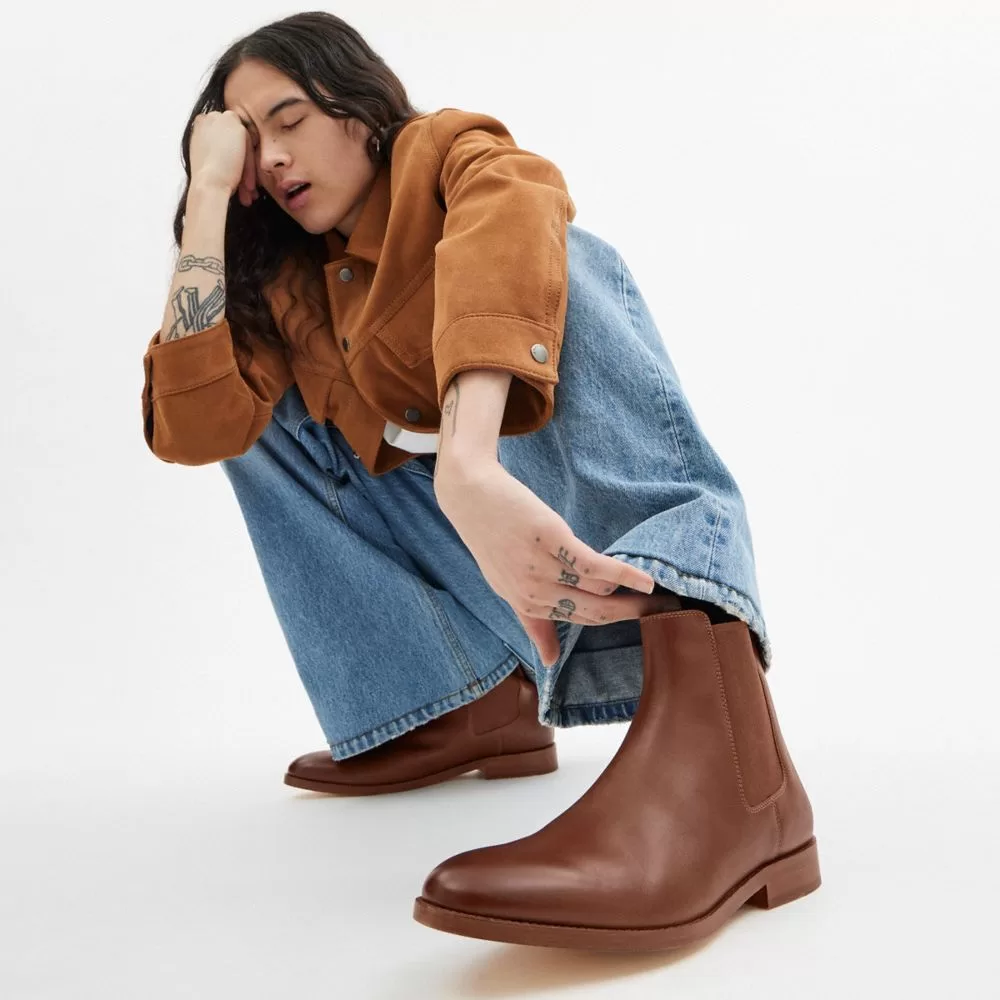Coach Men Boots Dalton Chelsea Boot Dark Saddle