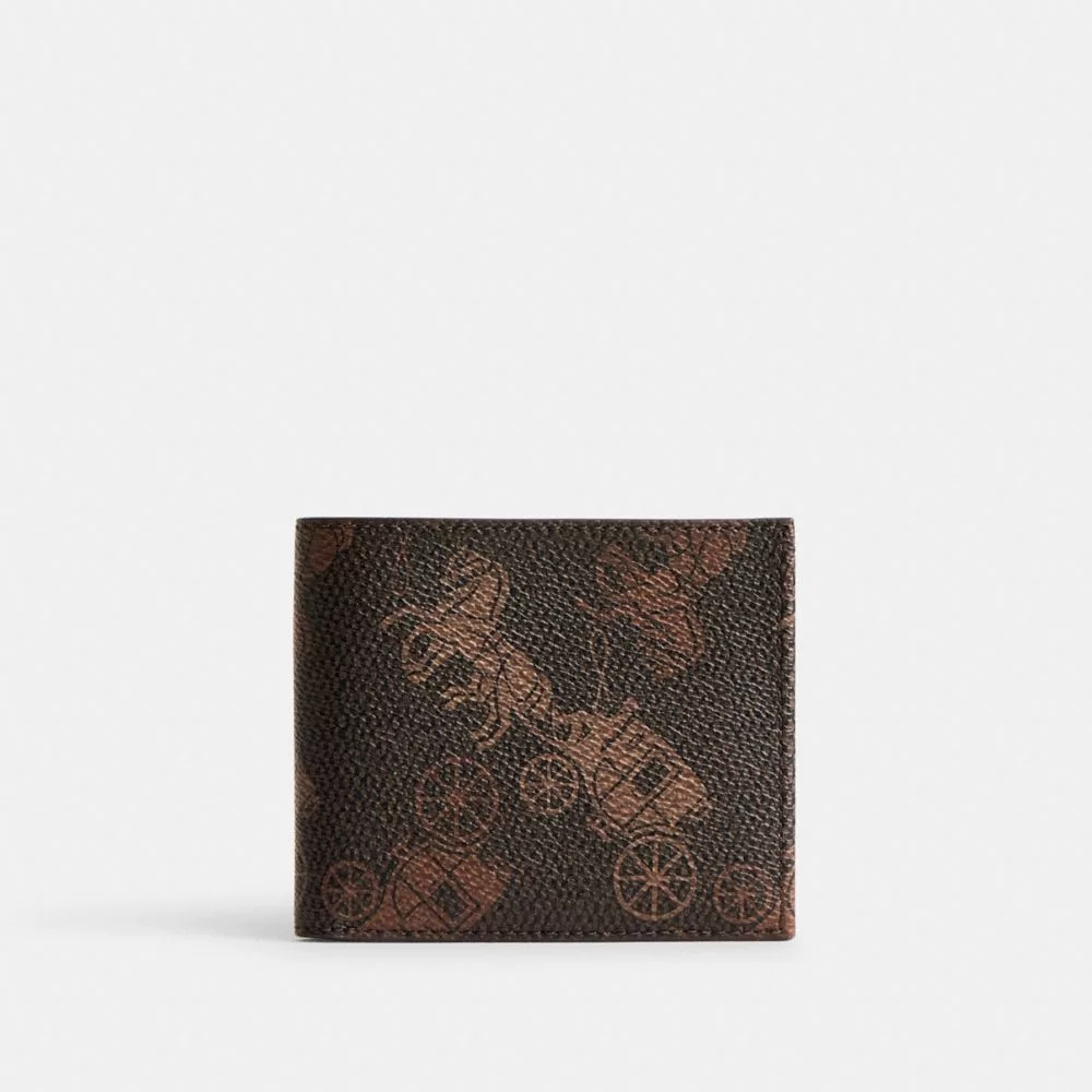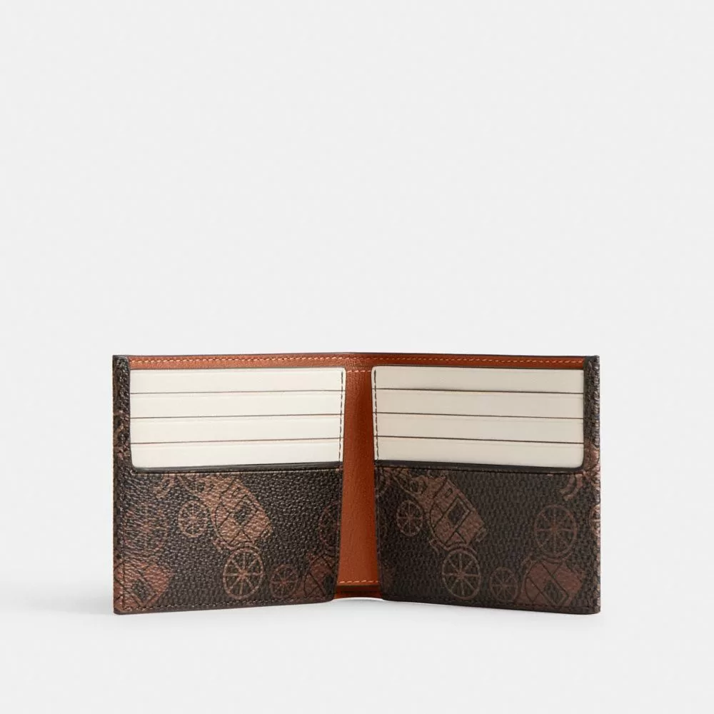 Coach Men Billfolds Double Billfold Wallet With Large Horse And Carriage Print Truffle/Burnished Amber