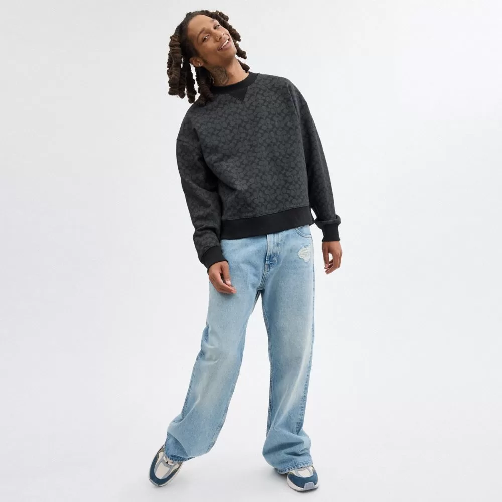 Coach Men Tops & Bottoms Essential Signature Crewneck Charcoal Signature