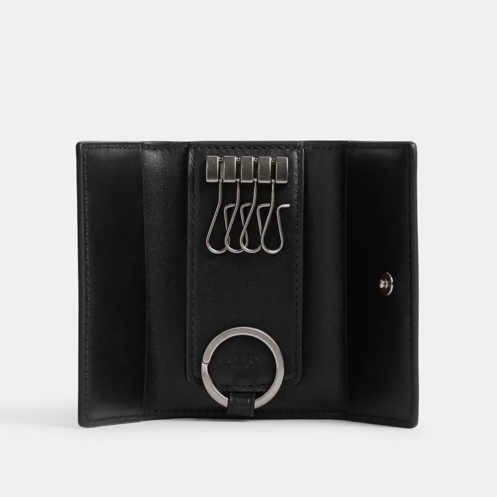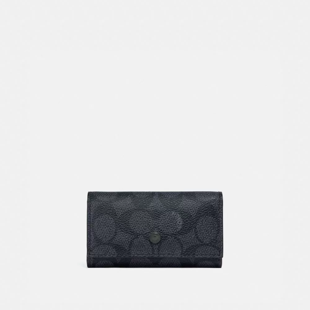Coach Men Bag Accessories & Keychains Four Ring Key Case In Signature Canvas Charcoal