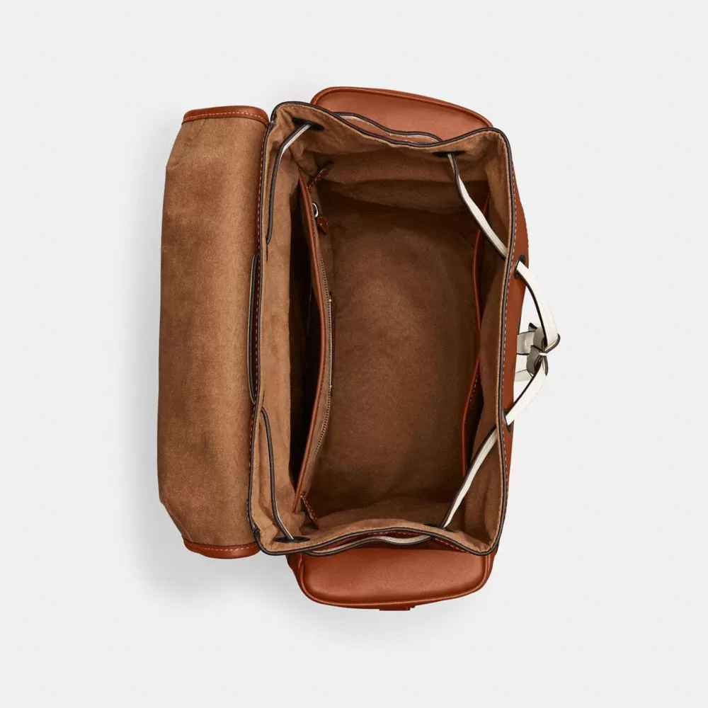 Coach Men Backpacks Hitch Backpack With Large Horse And Carriage Print printed coated canvas/Truffle/Burnished Amber