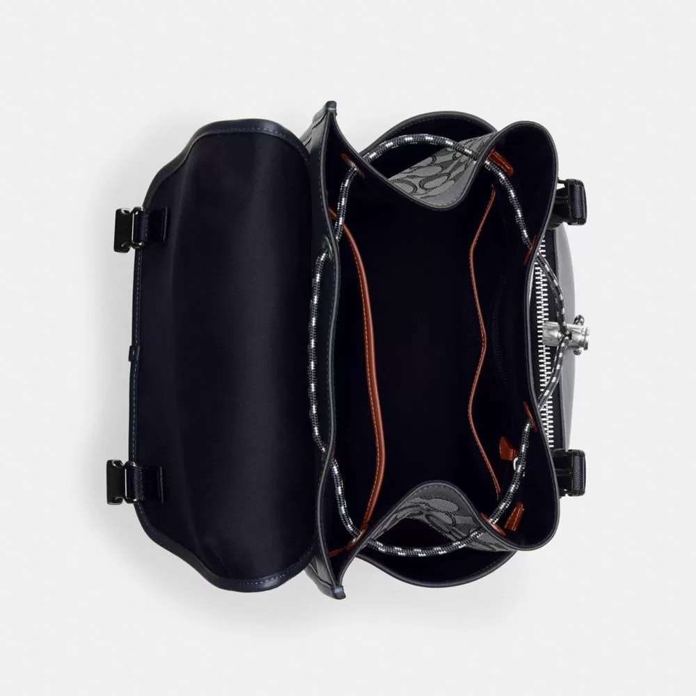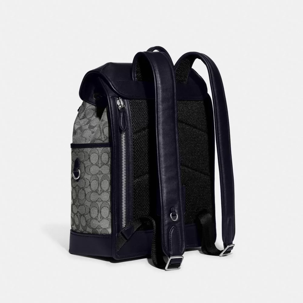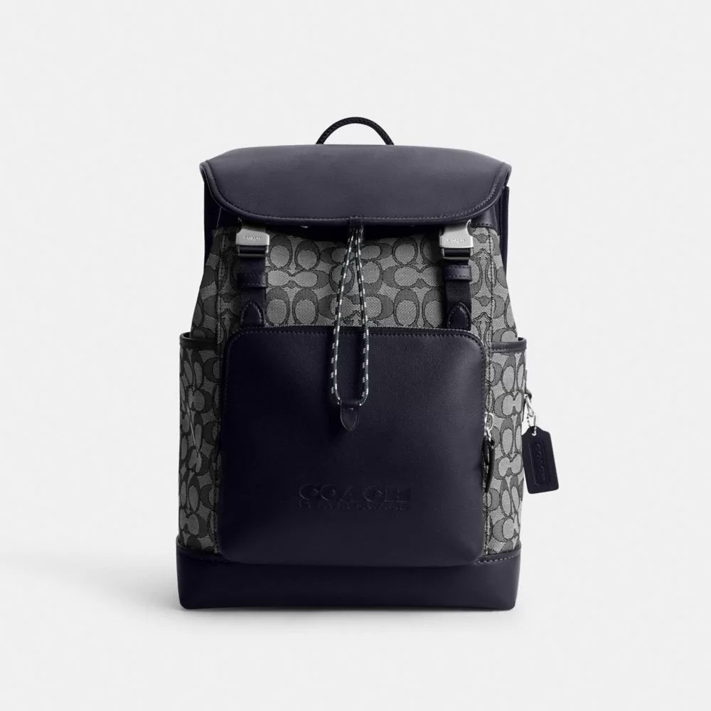 Coach League Flap Backpack In Signature Jacquard Backpacks Men Navy