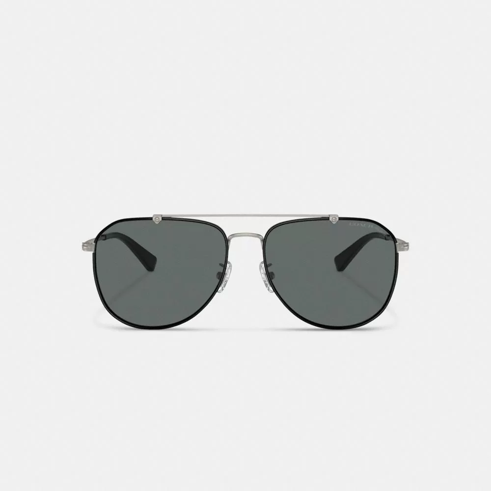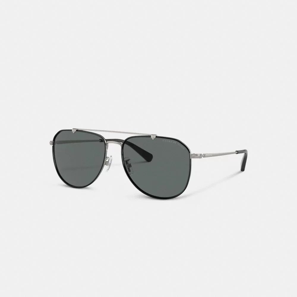 Coach Men Sunglasses Metal Windsor Pilot Sunglasses Black/Gunmetal