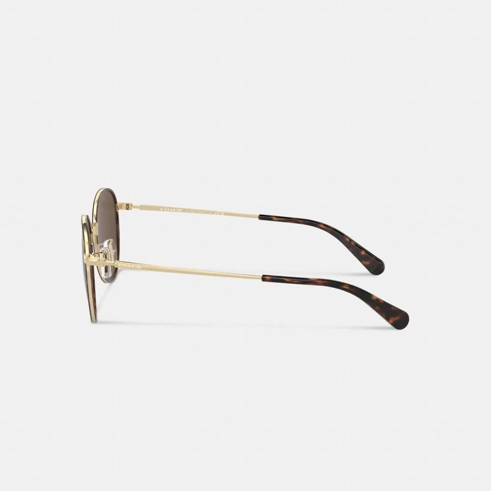 Coach Men Sunglasses Metal Windsor Round Sunglasses Brown/Gold