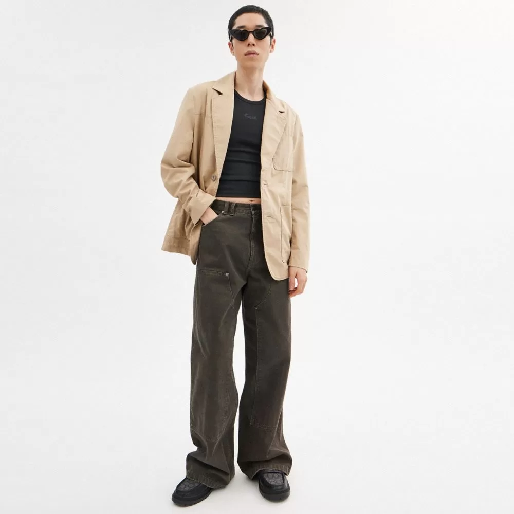 Coach Men Jackets & Outerwear Regenerative Cotton Casual Lightweight Blazer Khaki