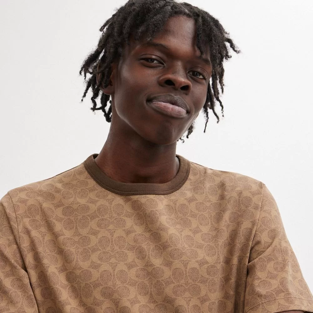 Coach Men Tops & Bottoms Signature T Shirt Tan Signature