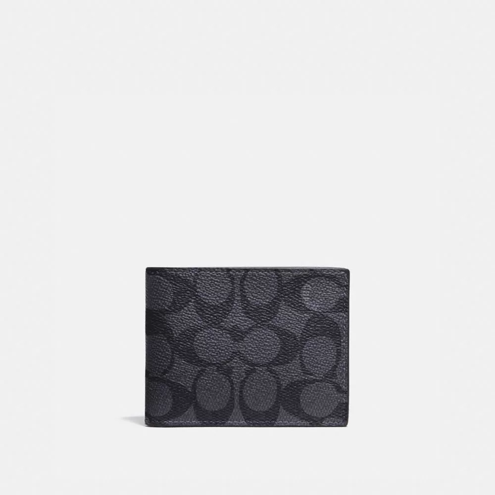 Coach Men Billfolds Slim Billfold Wallet In Signature Canvas signature coated canvas/smooth leather/Charcoal/Black