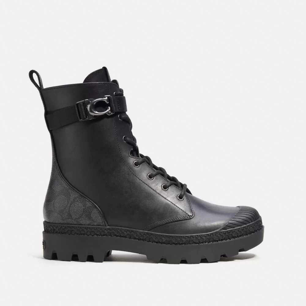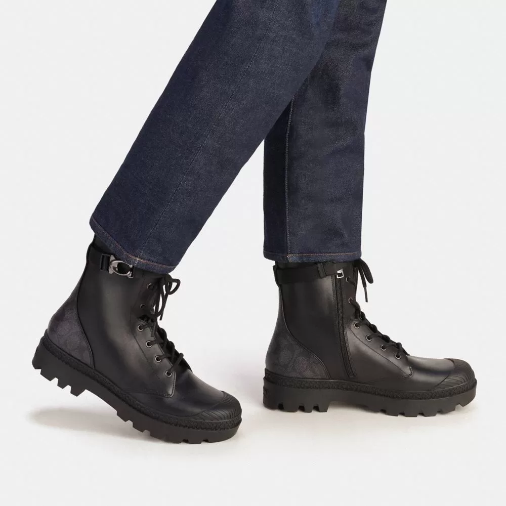 Coach Men Boots Tucker Boot With Signature Canvas Black
