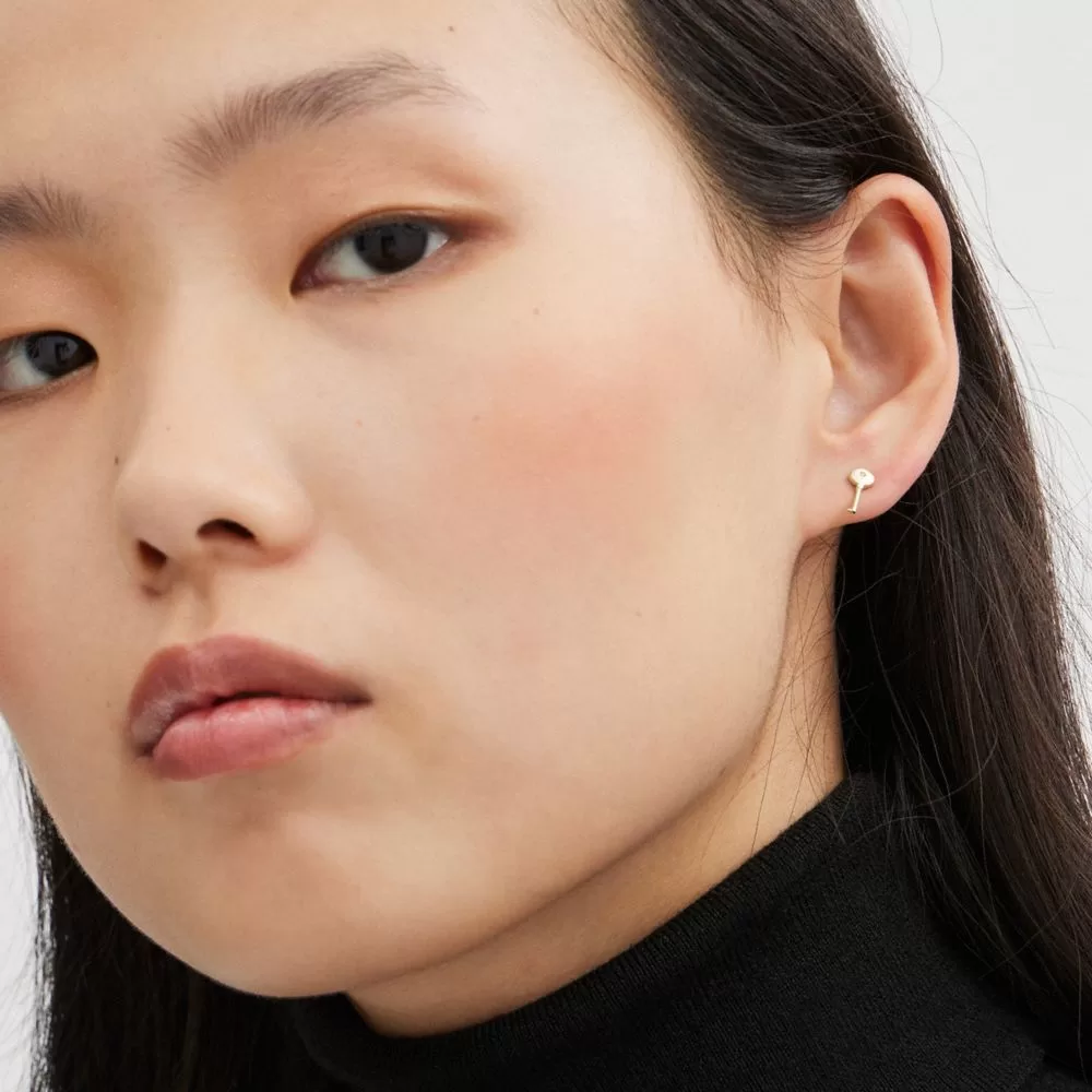 Coach 14K Gold Key Single Stud Earring Jewelry Women Gold