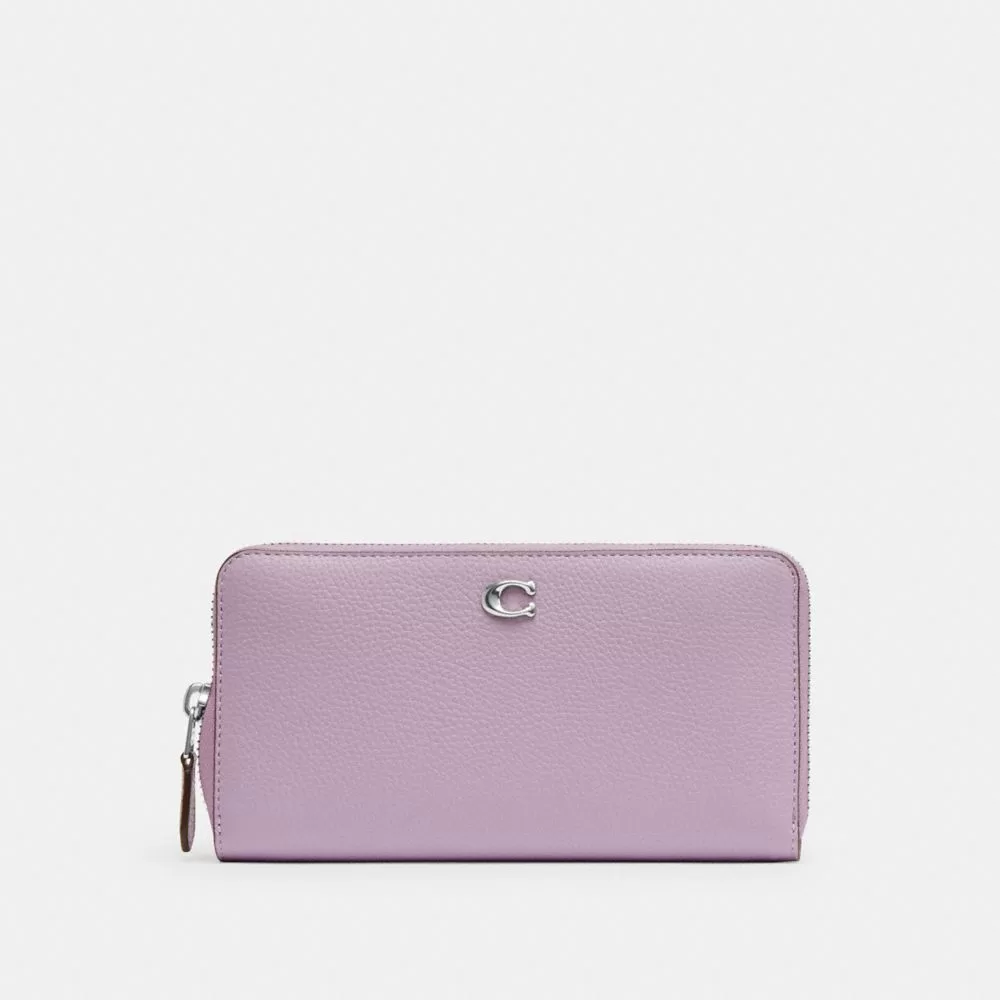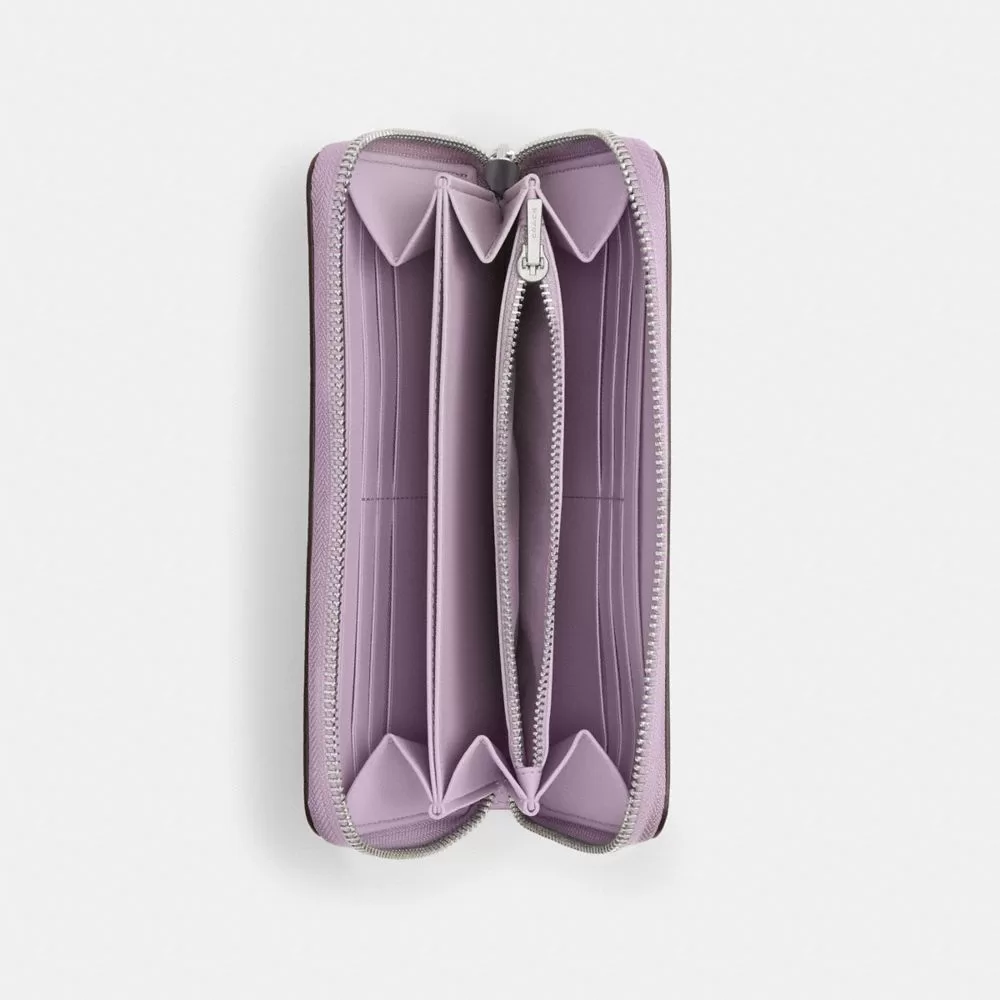 Coach Women Large Wallets Accordion Zip Wallet Silver/Soft Purple
