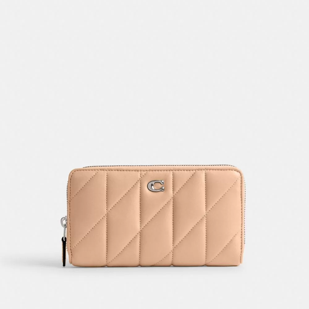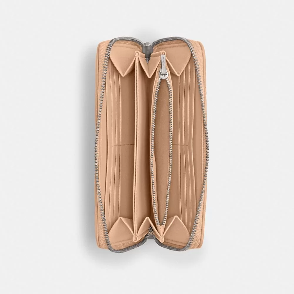Coach Women Large Wallets Accordion Zip Wallet With Pillow Quilting nappa leather/Silver/Buff