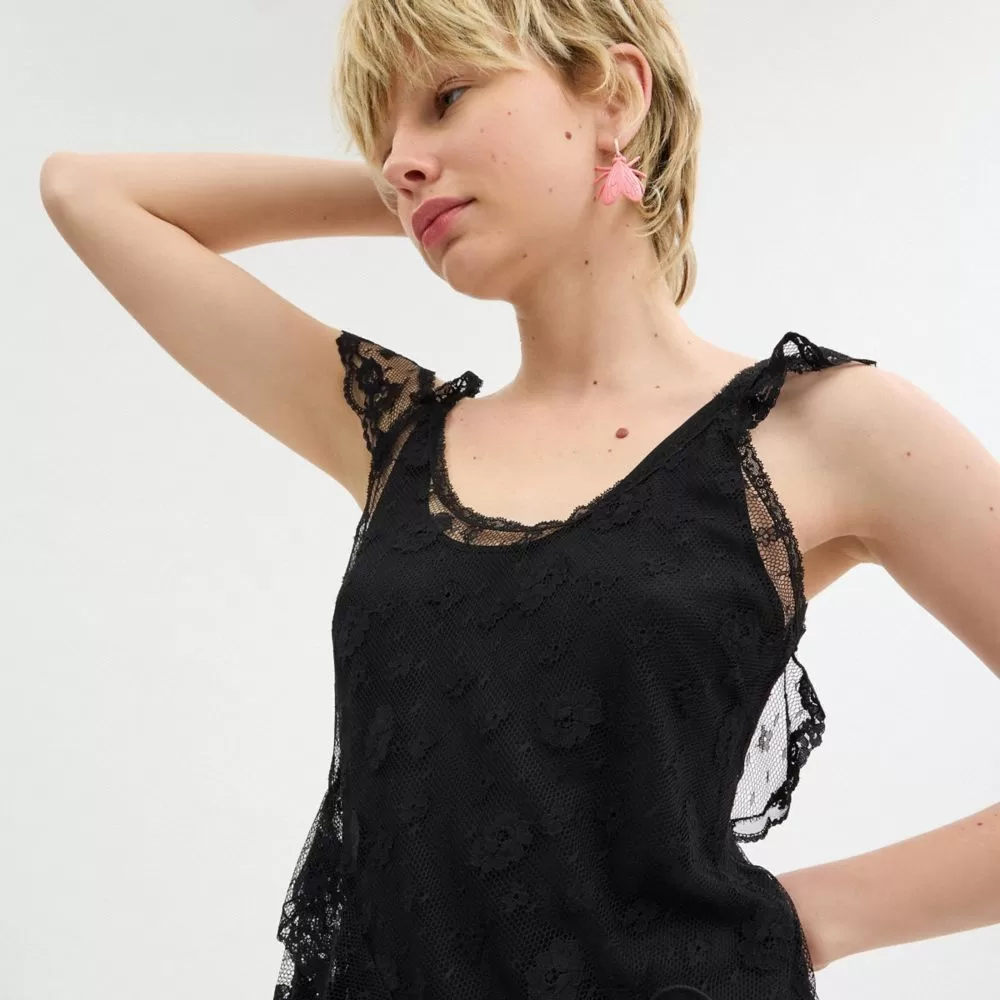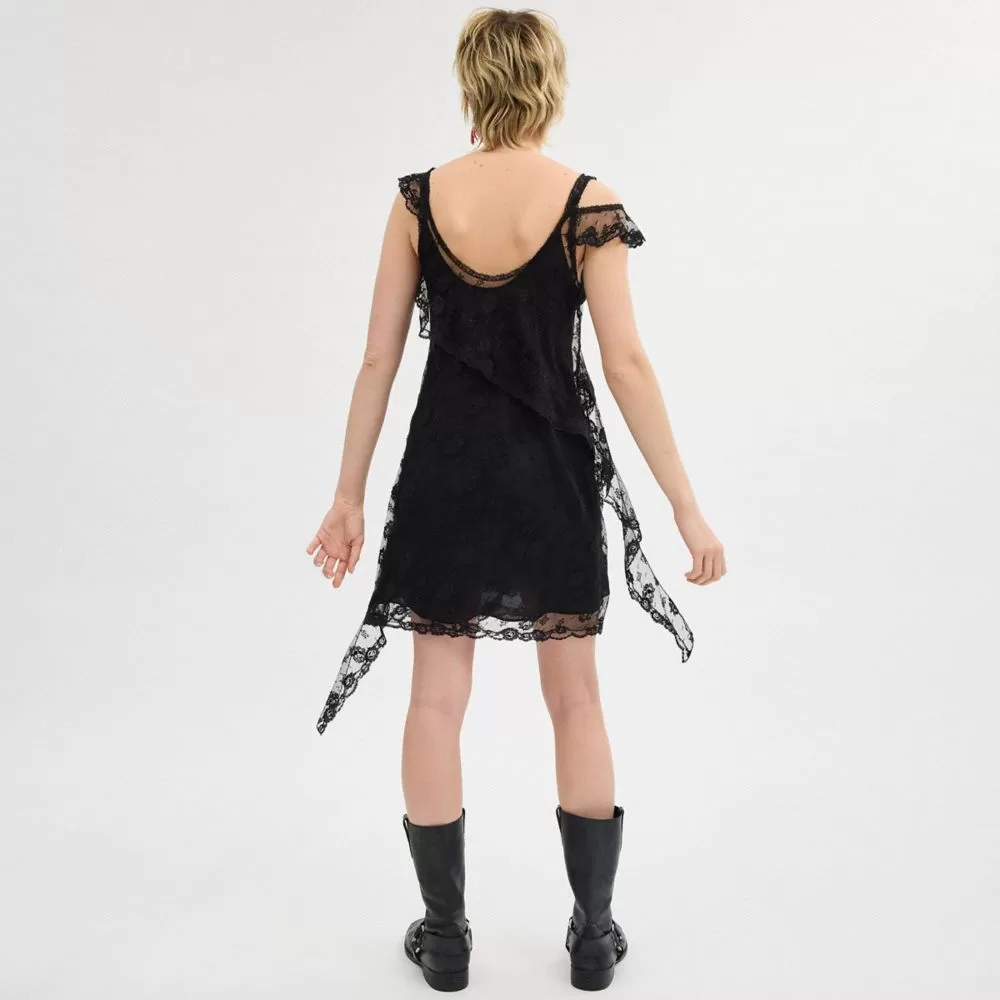 Coach Women Dresses All Over Lace Mini Dress Black