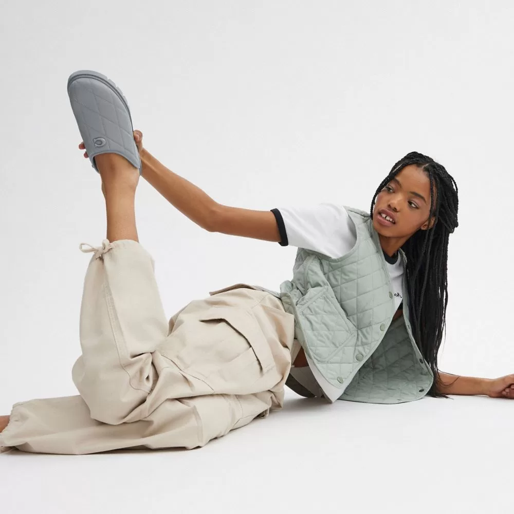 Coach Women Flats & Loafers Alyssa Clog With Quilting Gray Blue