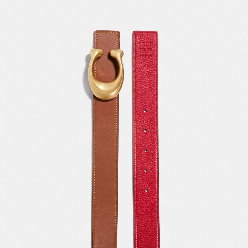 Coach Women Belts C Hardware Reversible Belt, 32 Mm Brass/Red/1941 Saddle