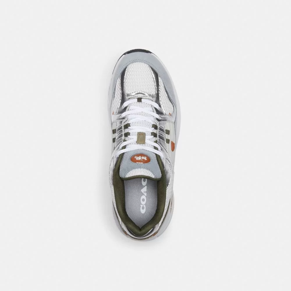 A sleek style based on classic running shoes, our sporty C301 sneaker is crafted in a mix of high-shine metallic leather, suede, leather and mesh fabric. Detailed with our iconic Horse and Carriage motif on the tongue, our Signature hardware at the side and our name at the heel, the lace-up design is finished with a lightweight EVA sole for all-day comfort and traction.