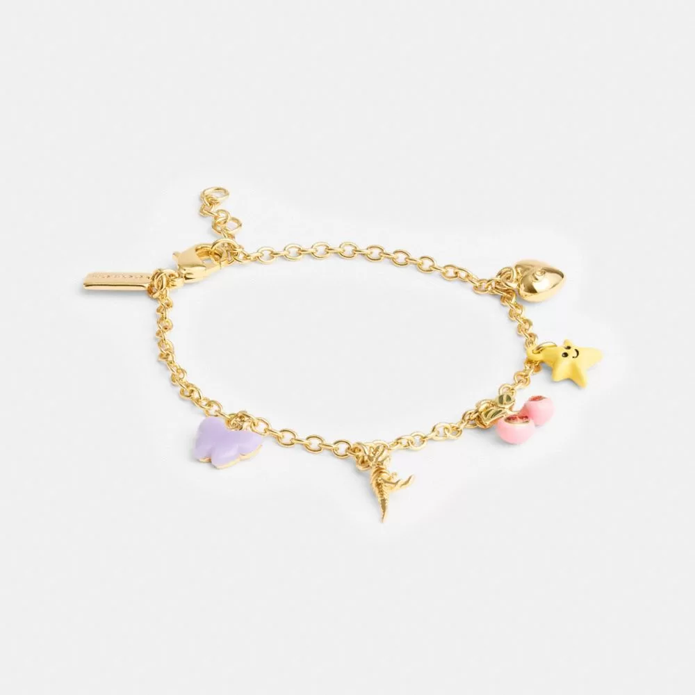 Coach Women Jewelry Cherry And Heart Charm Bracelet Gold/Multi