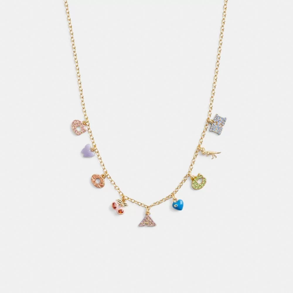 Coach Women Jewelry Cherry And Heart Charm Necklace Gold/Multi