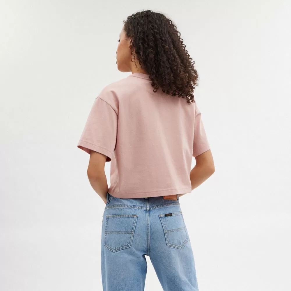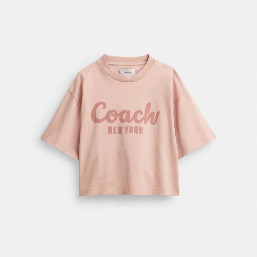 Detailed with our cursive Coach script, this cropped T-shirt is crafted of soft cotton. The boxy silhouette features a comfortable, easy to wear dropped shoulder.