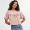 Coach Women Tops Cursive Signature Cropped T Shirt Pink