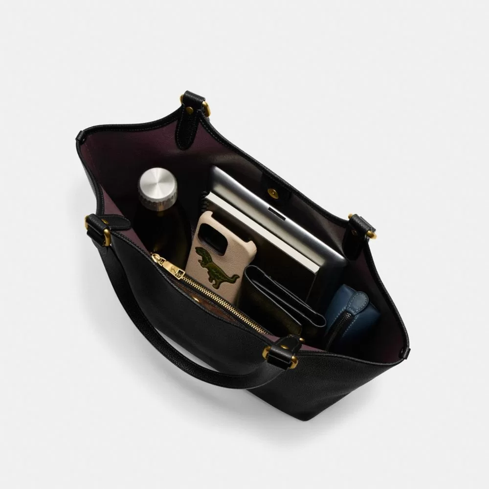 With its modern contours and roomy proportions, this tote is built to go wherever the day takes you. Crafted of polished pebble leather and our Signature canvas, it has plenty of room for all of the essentials, space for a 13″ laptop, an easy-open snap closure and a convenient removable zip pouch.