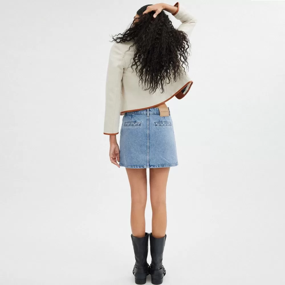 A classic A-line silhouette, this mini skirt will take you seamlessly through the seasons. The cotton denim design is detailed with subtle heritage touches such as our signature at the pockets and a leather patch at the waistband.