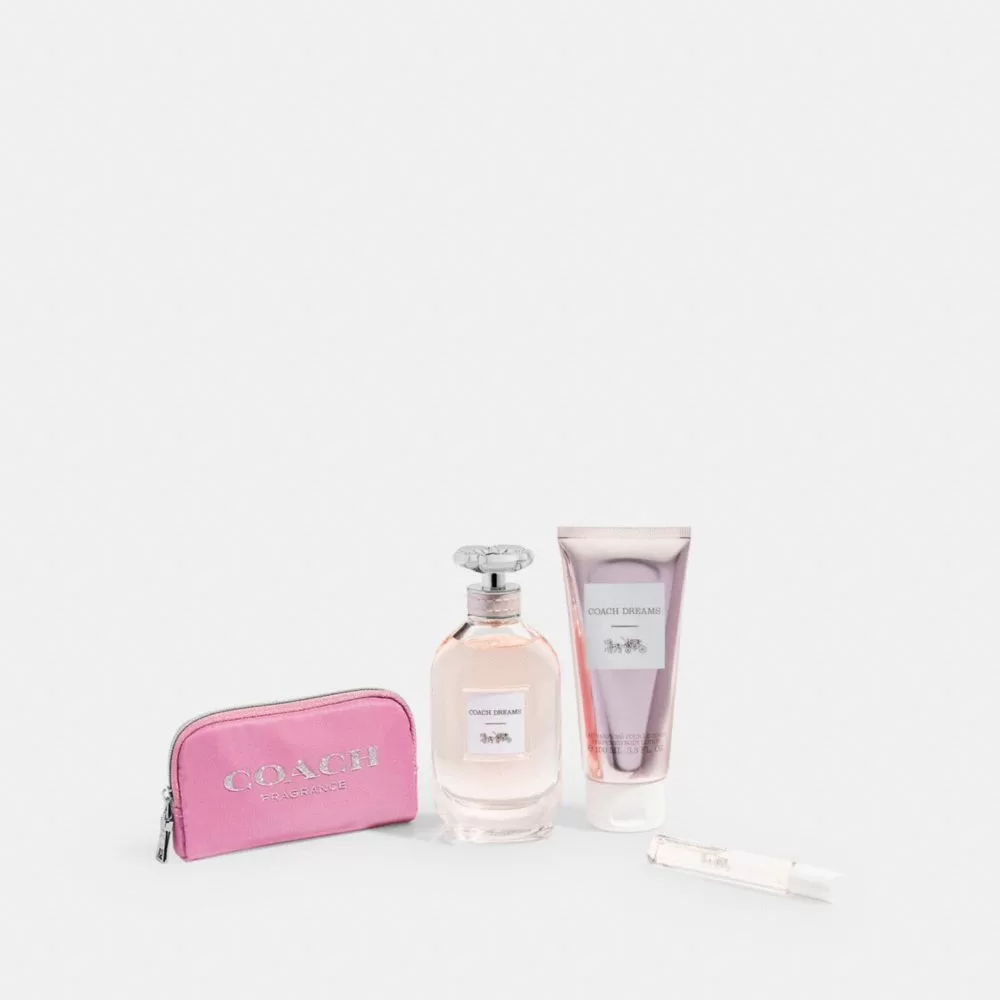 Live yours. Coach Dreams is our exciting scent inspired by the freedom and adventure of a road trip across America. The radiant, woody fragrance opens with notes of bitter orange and juicy pear, revealing a heart of gardenia and cactus flower before drying down to sensual Joshua Tree and Ambroxan musk. Layer it on with this travel-friendly gift set that includes a 3 oz. eau de parfum spray, a 3.3 oz. lotion and a 0.25 oz. mini eau de parfum spray.
