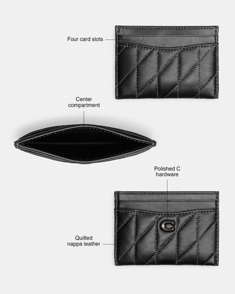 Crafted of polished pebble leather detailed with our Signature hardware, this case has four card slots and a center compartment to hold more cards or cash. Slip it in your pocket or stash inside your bag.