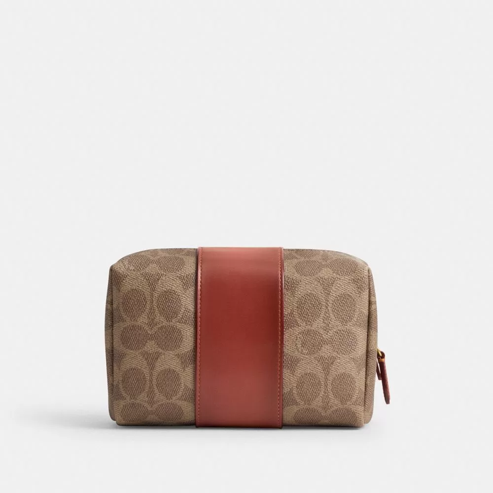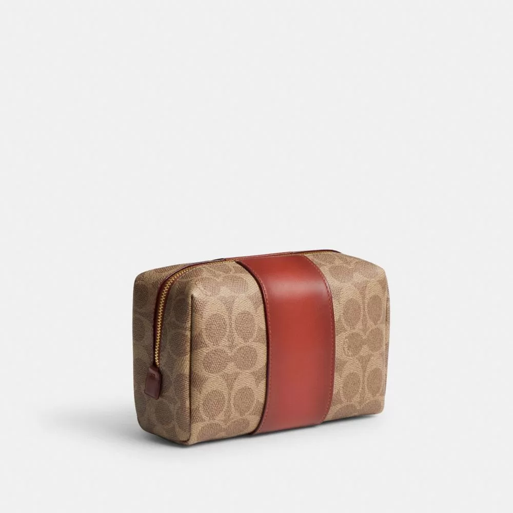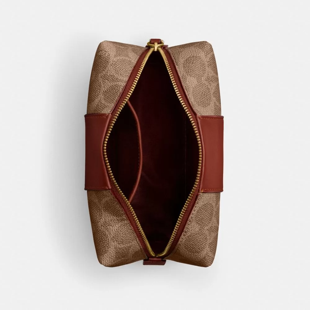 Coach Women Tech & Travel Essential Cosmetic Pouch In Signature Canvas Brass/Tan/Rust