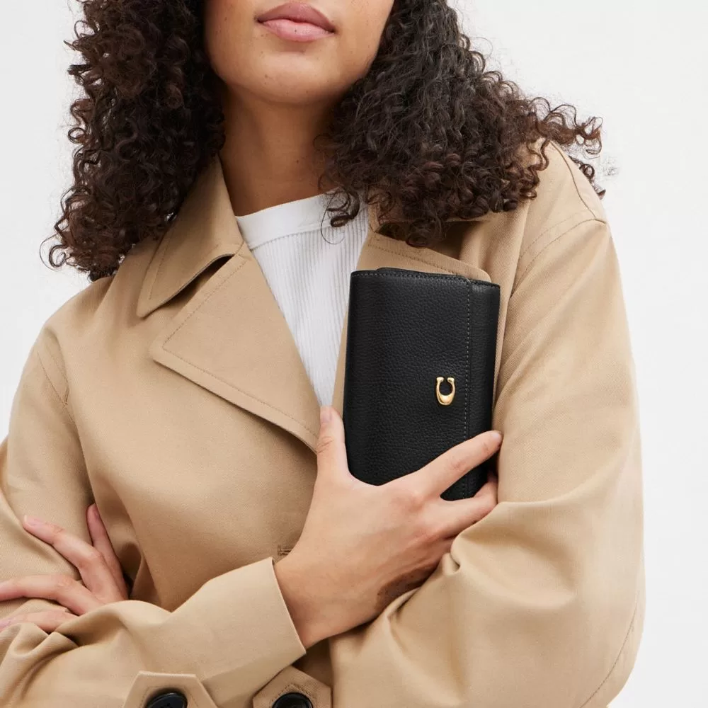 Coach Women Large Wallets Essential Medium Flap Wallet Brass/Black
