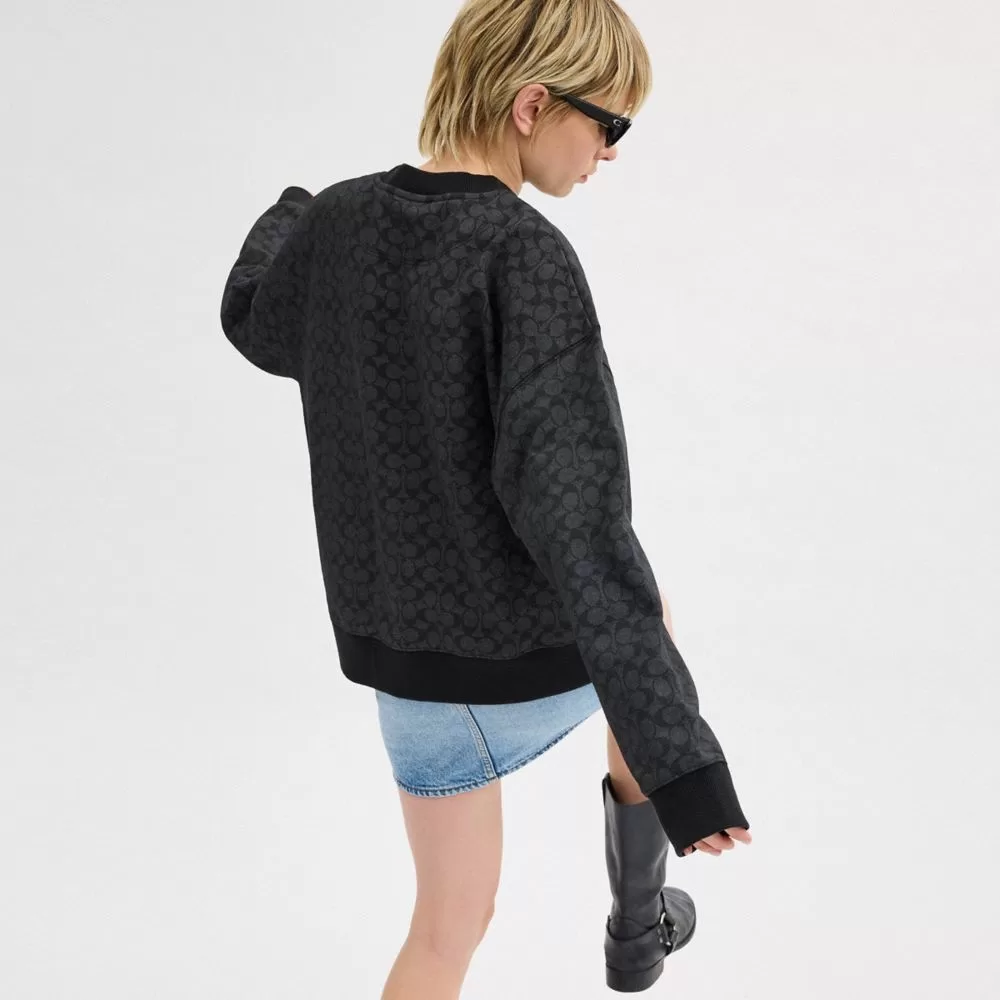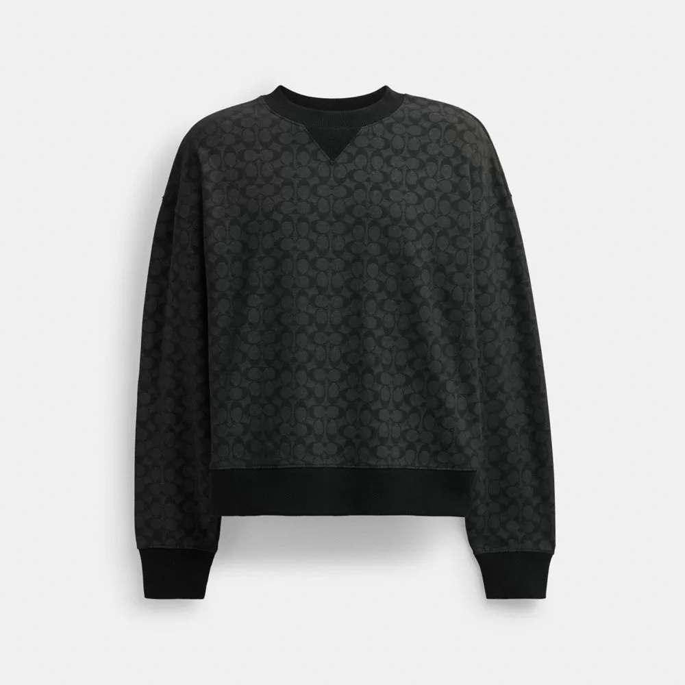 Coach Women Tops & Bottoms Essential Signature Crewneck Charcoal Signature