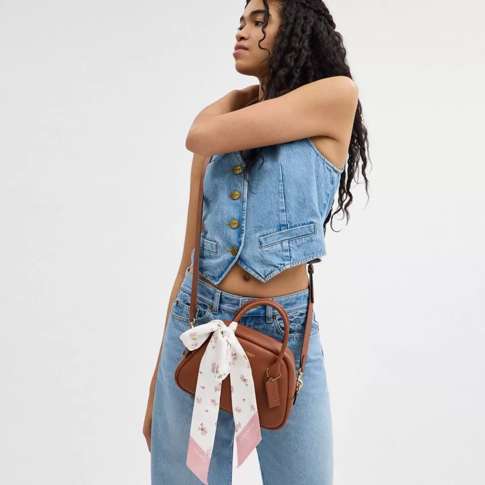 Coach Women Hats Scarves & Gloves Floral Print Silk Skinny Scarf Chalk Multi
