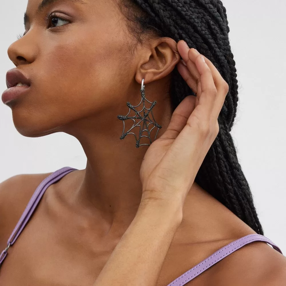 Coach Women Jewelry Fly Web Mismatch Earrings Silver/Multi