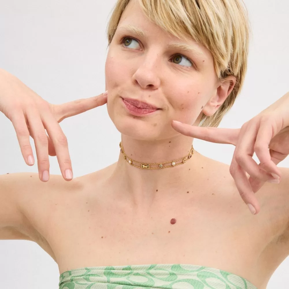 Coach Women Jewelry Garden Charms Choker Necklace Gold/Multi