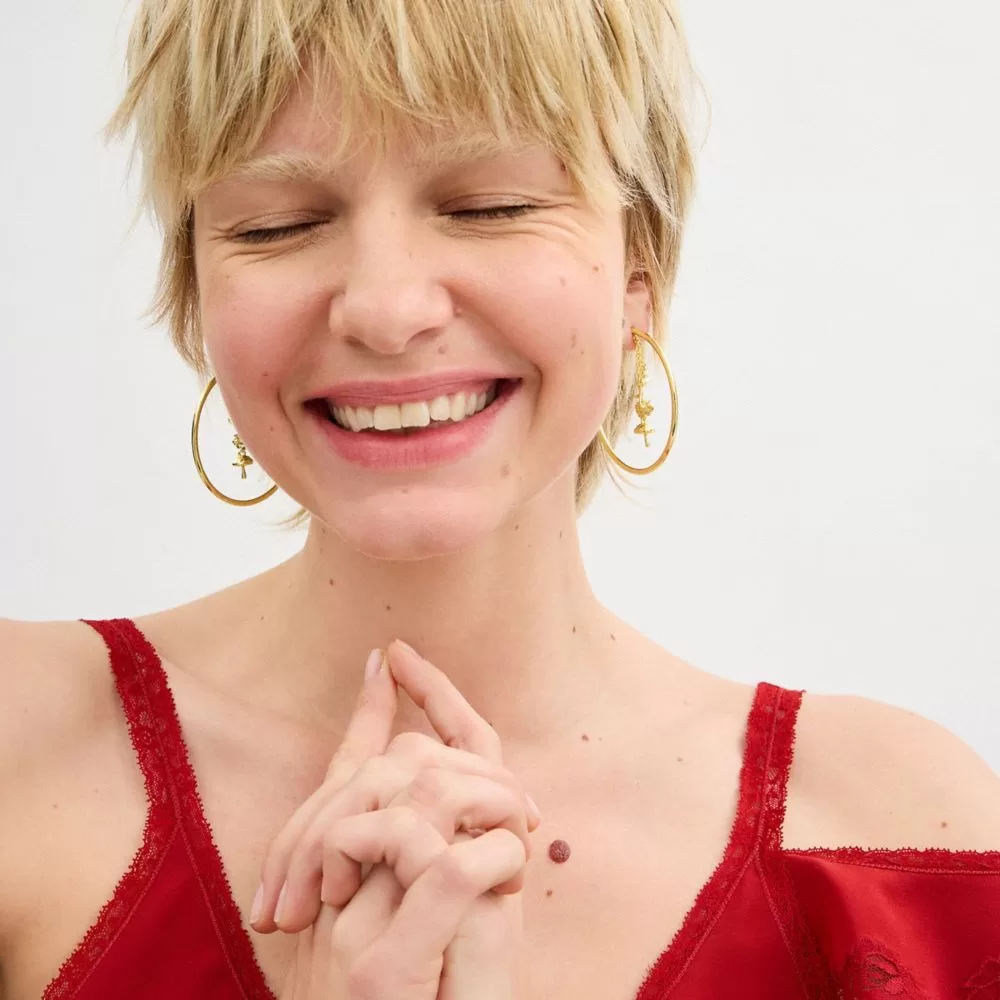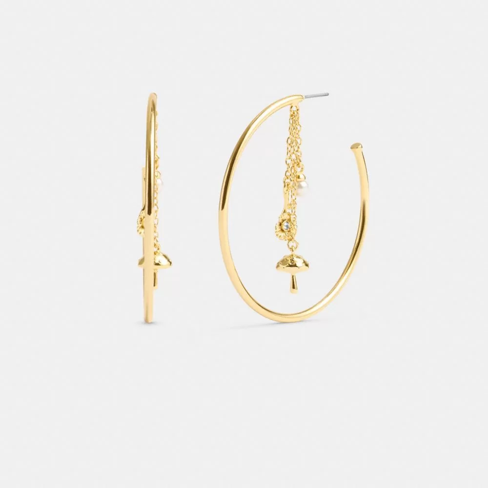 Coach Garden Charms Hoop Earrings Jewelry Women Gold