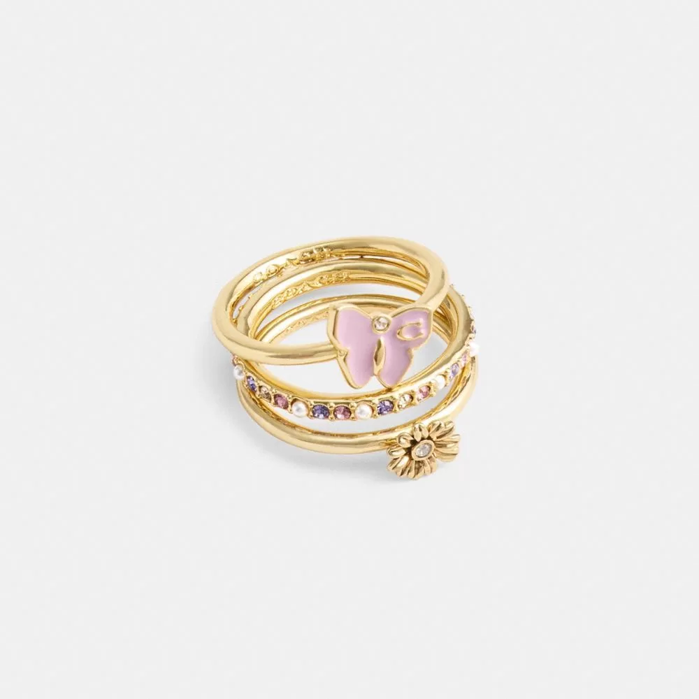 Coach Women Jewelry Garden Charms Ring Set Gold/Multi