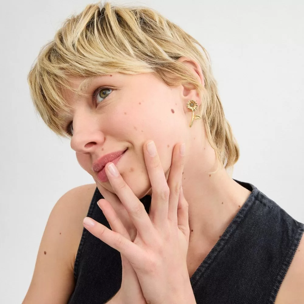Coach Garden Flower Stem Stud Earrings Jewelry Women Gold