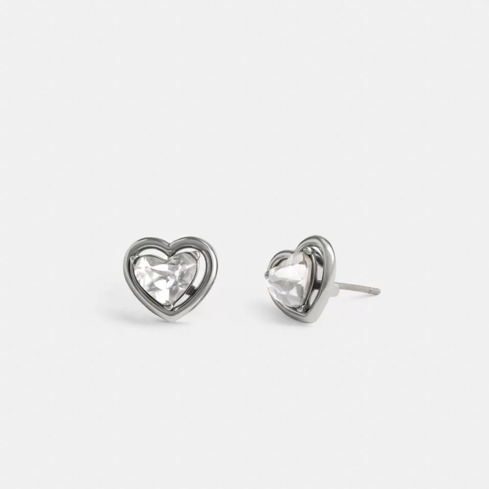 Coach Women Jewelry Halo Heart Stud Earrings Silver