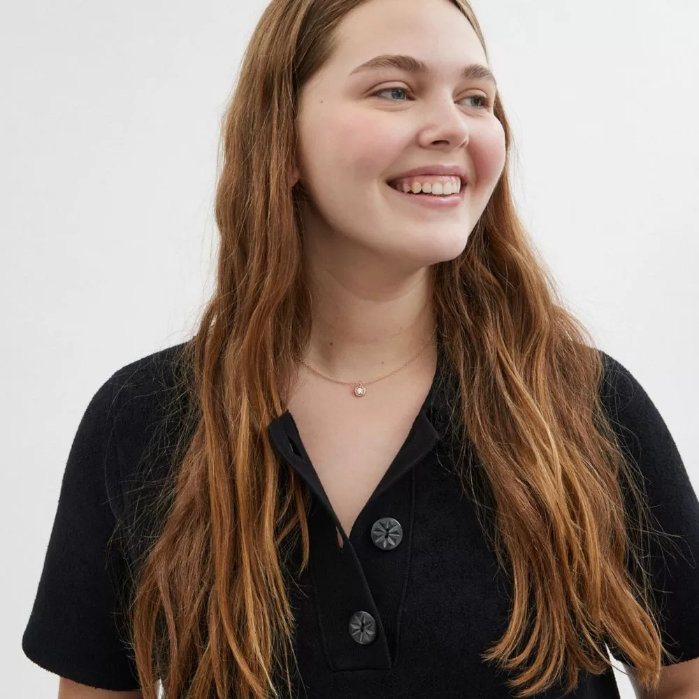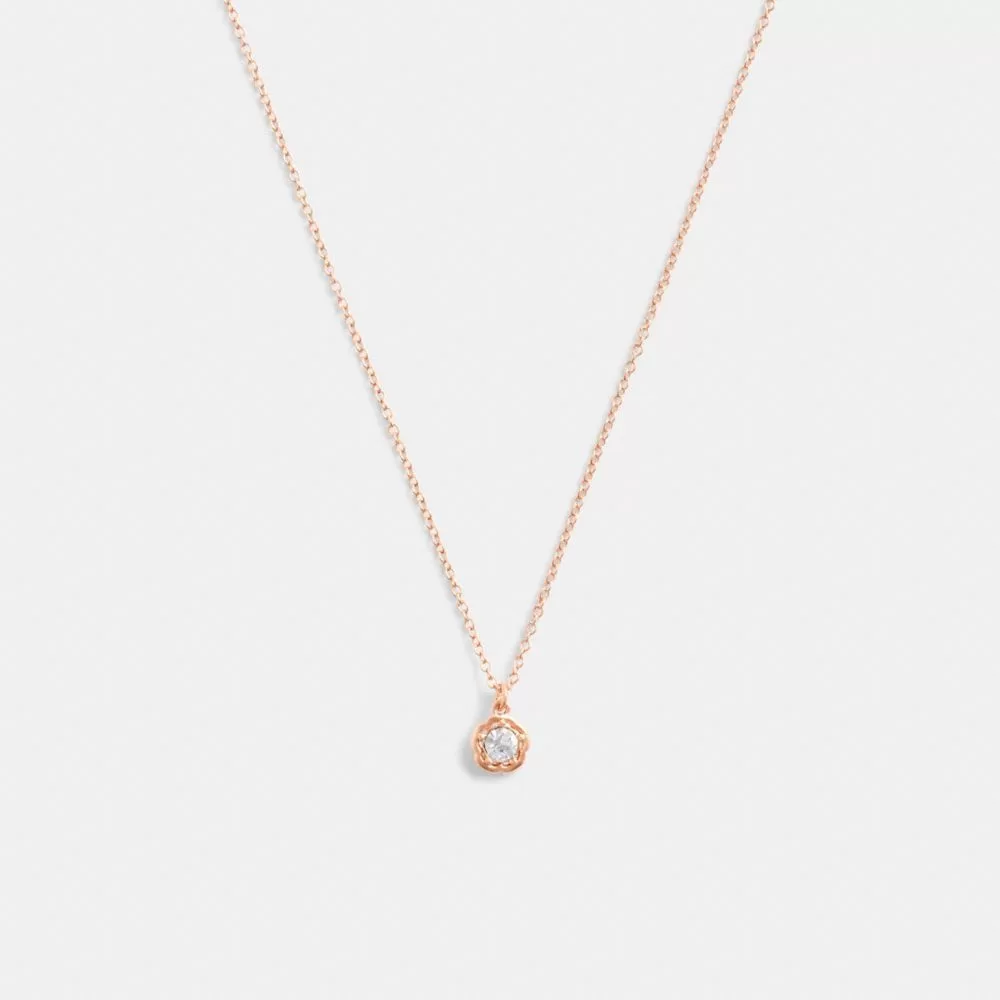 Coach Women Jewelry Halo Tea Rose Pendant Necklace Rose Gold