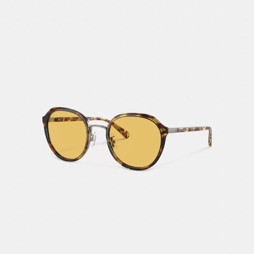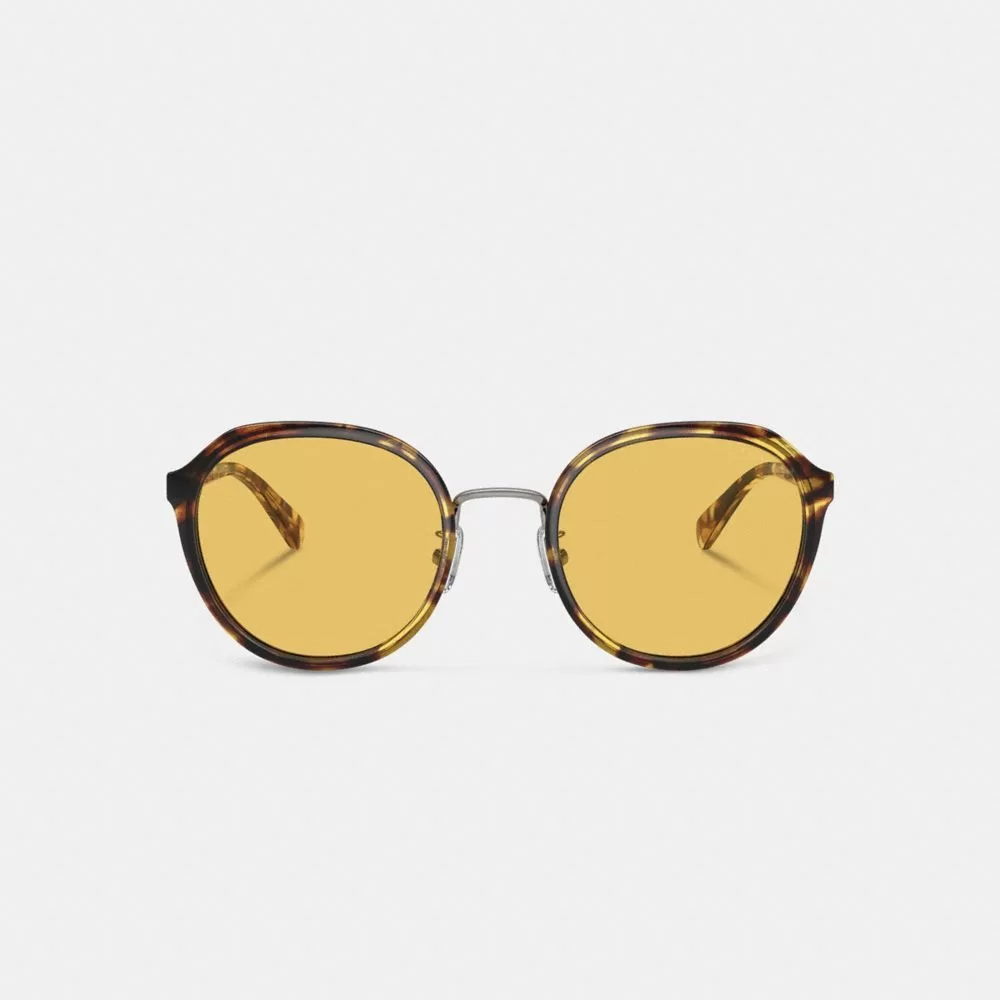 Coach Women Eyewear Hangtag Geometric Round Sunglasses Honey Tortoise