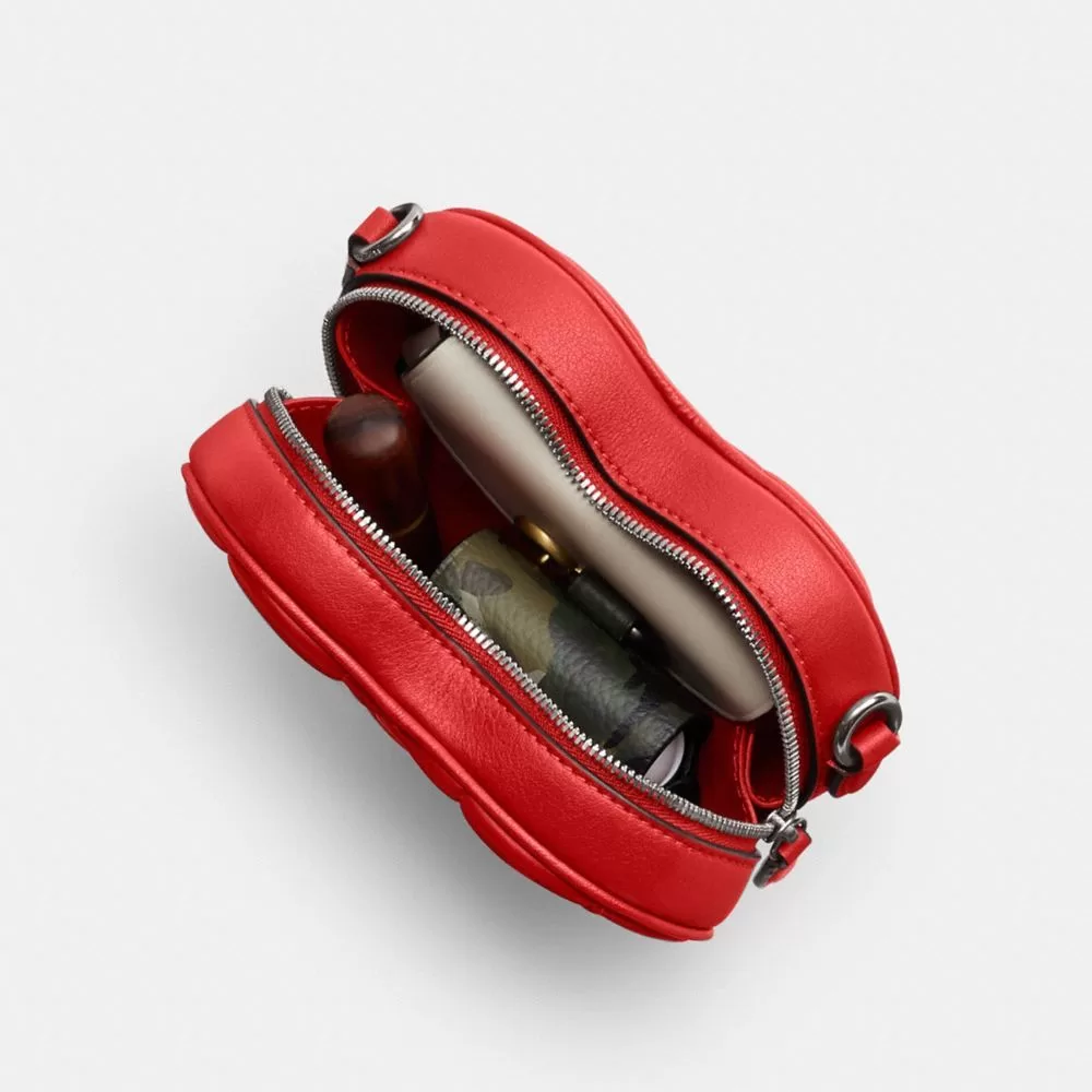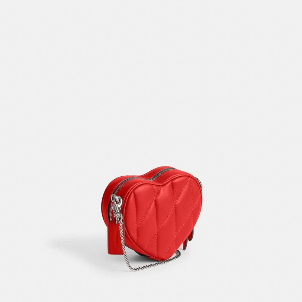 Coach Women Crossbody Bags Heart Crossbody Bag 14 With Pillow Quilting nappa leather/Silver/Sport Red