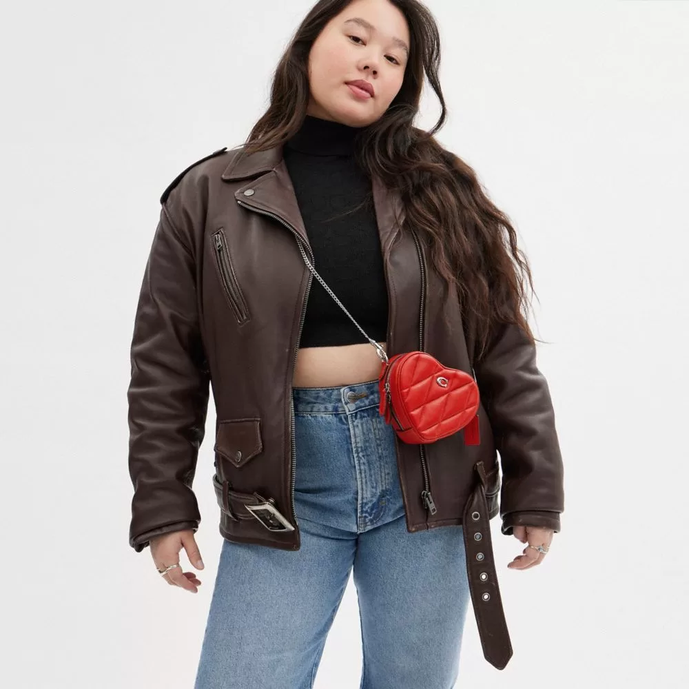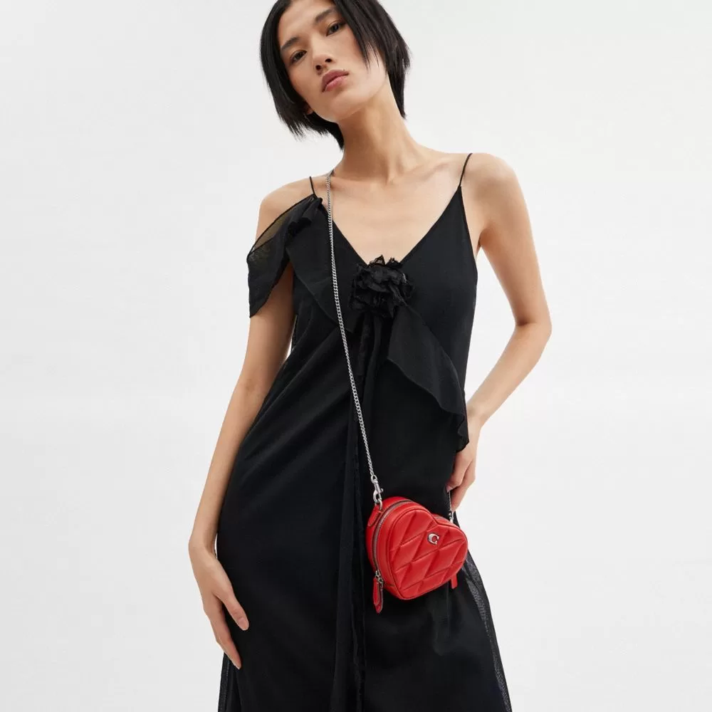 Mini me. We made a scaled down version of our playfully romantic Heart crossbody with all of the same details as the original. Crafted of quilted nappa leather and finished with a crossbody strap, it has room for cash, cards, lipstick, and keys. (Great things come in small packages.)