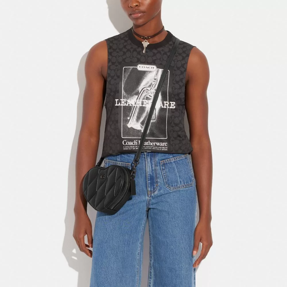 Coach Women Crossbody Bags Heart Crossbody Bag With Quilting Pewter/Black